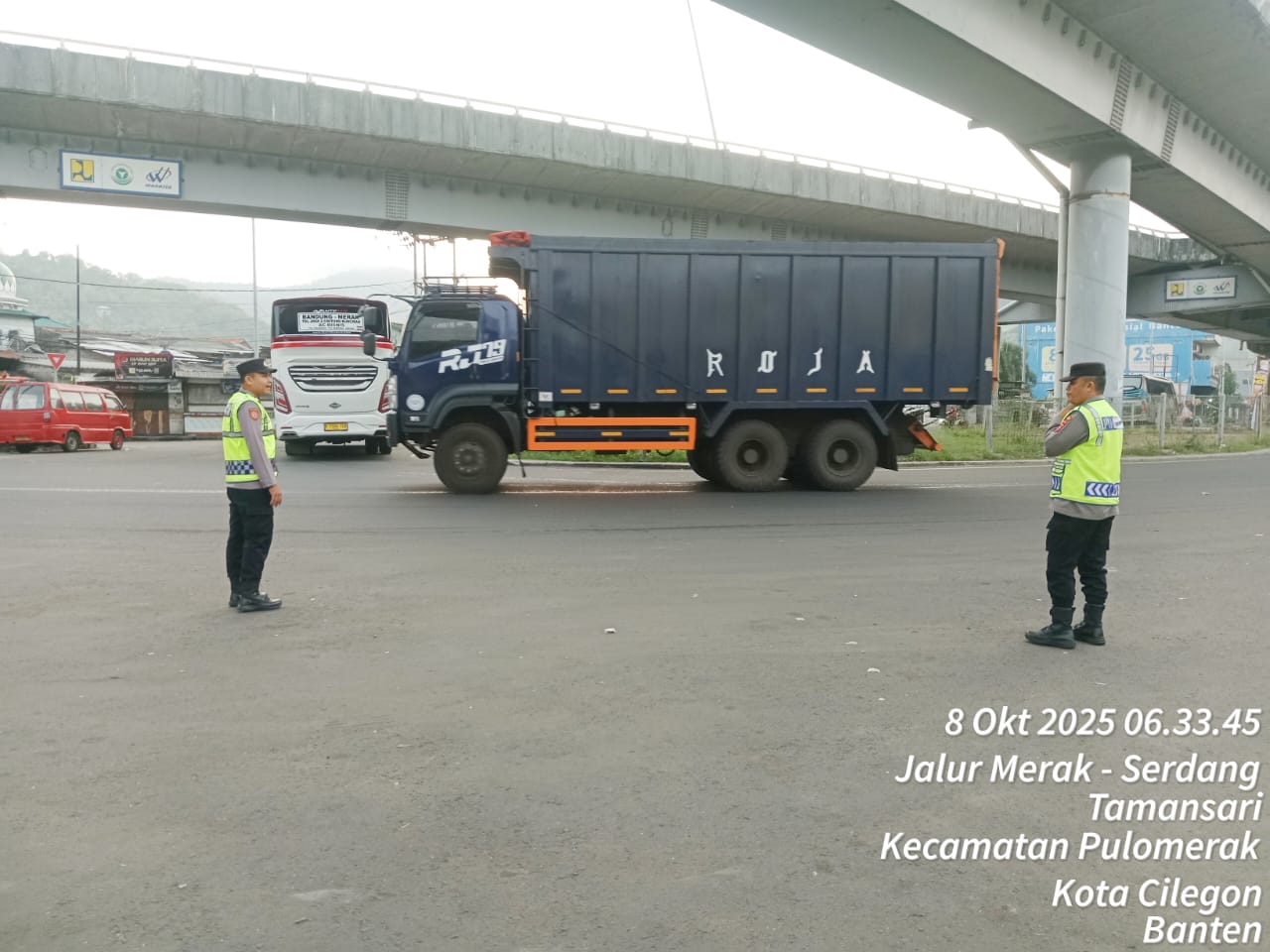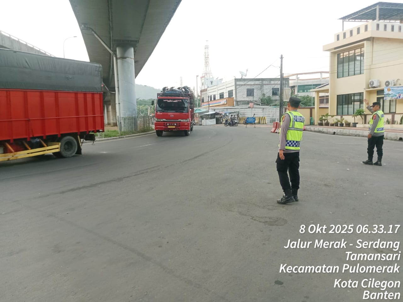 Guna Wujudkan Kamseltibcarlantas, Polsek KSKP Merak Lakukan Pengaturan Lalu Lintas di Pelabuhan