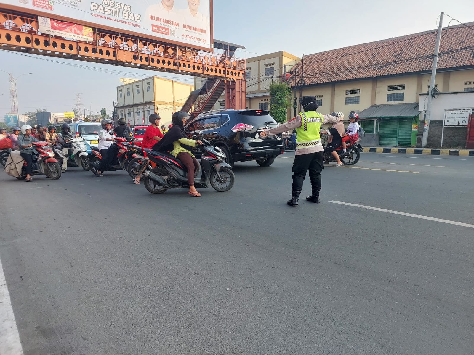 PERSONEL LOGISTIK MELAKSANAKAN GATUR LALU LINTAS DI WILAYAH HUKUM POLRES CILEGON