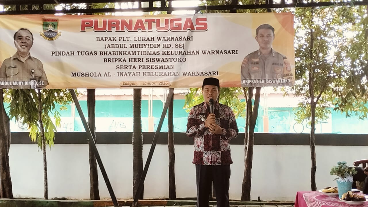 Cilegon - Bhabinkamtibmas Kelurahan Warnasari, AIPDA Mere Erlansyah, dan Bhabinkamtibmas Kelurahan Kepuh, BRIPKA Heri Siswantoko menghadiri kegiatan purna tugas PLT Lurah Warnasari dan pindah tugas Bhabinkamtibmas Kelurahan Warnasari, serta peresmian Mushola Al-Inayah Kelurahan Warnasari, di Kantor Kelurahan Warnasari, Citangkil, Cilegon. Jum'at (30/01/2026).Kegiatan ini merupakan upaya anggota Bhabinkamtibmas Polsek Ciwandan dalam menciptakan...