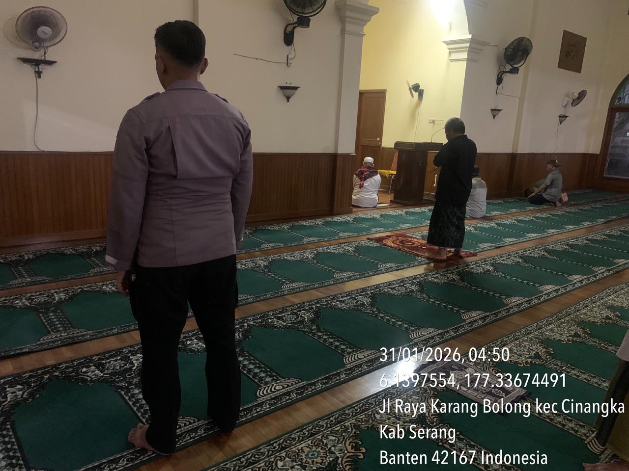 Cilegon – Polres Cilegon Polda Banten, Personil Polsek Cinangka Polres Cilegon menggelar kegiatan Pembinaan Rohani dengan shalat subuh keliling di Masjid T.A.A Ds Kamasan Kec. Cinangka kab. Serang, Sabtu (31/01/2026). Selain bertujuan untuk meningkatkan iman dan takwa kegiatan ini juga dapat mempererat hubungan antara kepolisian dan masyarakat serta meningkatkan kesadaran akan pentingnya keamanan dan ketertiban dalam kehidupan...