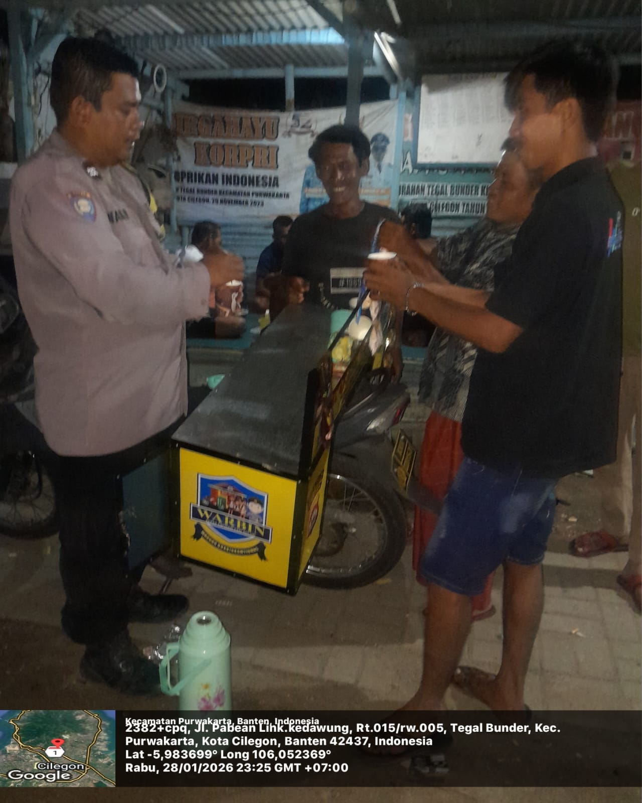 Kapolsek Ciwandan dan Bhabinkamtibmas Ciwandan melaksanakan kegiatan patroli untuk menjaga situasi kamtibmas yang aman dan kondusif. Kegiatan patroli ini dilakukan untuk ¹:- Mengantisipasi terjadinya aksi kejahatan: Dengan adanya patroli, masyarakat merasa lebih aman dan nyaman.- Memberikan pelayanan dan pengayoman kepada masyarakat: Bhabinkamtibmas Polsek Ciwandan secara aktif melakukan patroli dialogis dan...
