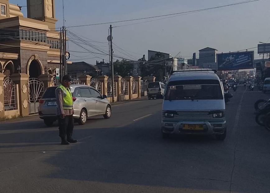 Polsek Anyar Dalam Pengaturan Lalu Lintas Lancarkan Jalur Kendaraan