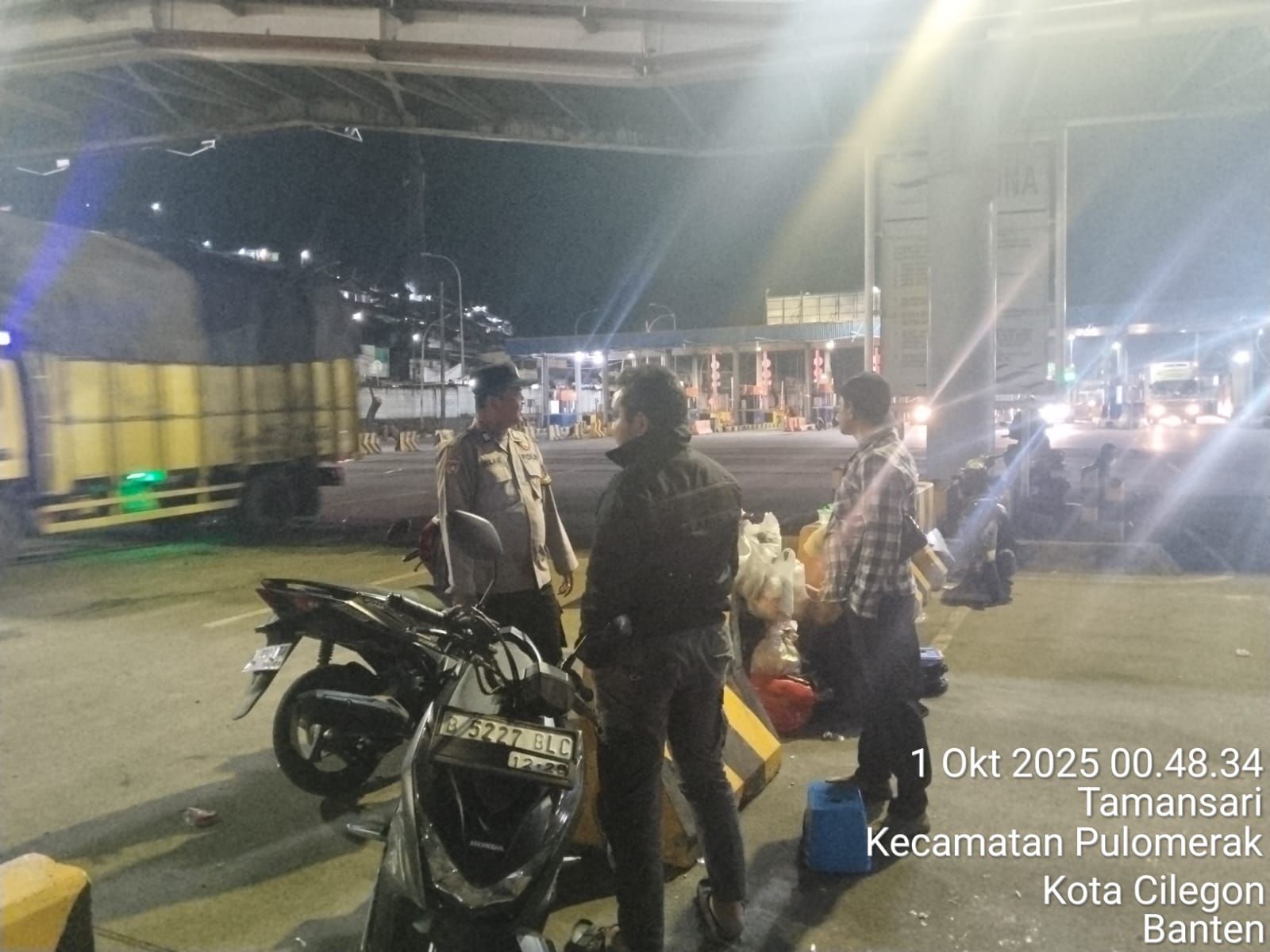 Cilegon - Personil Polsek Kskp Merak Polres Cilegon melaksanakan patroli di kawasan pelabuhan merak memberikan rasa aman dan damai, Rabu (01/10/2025)