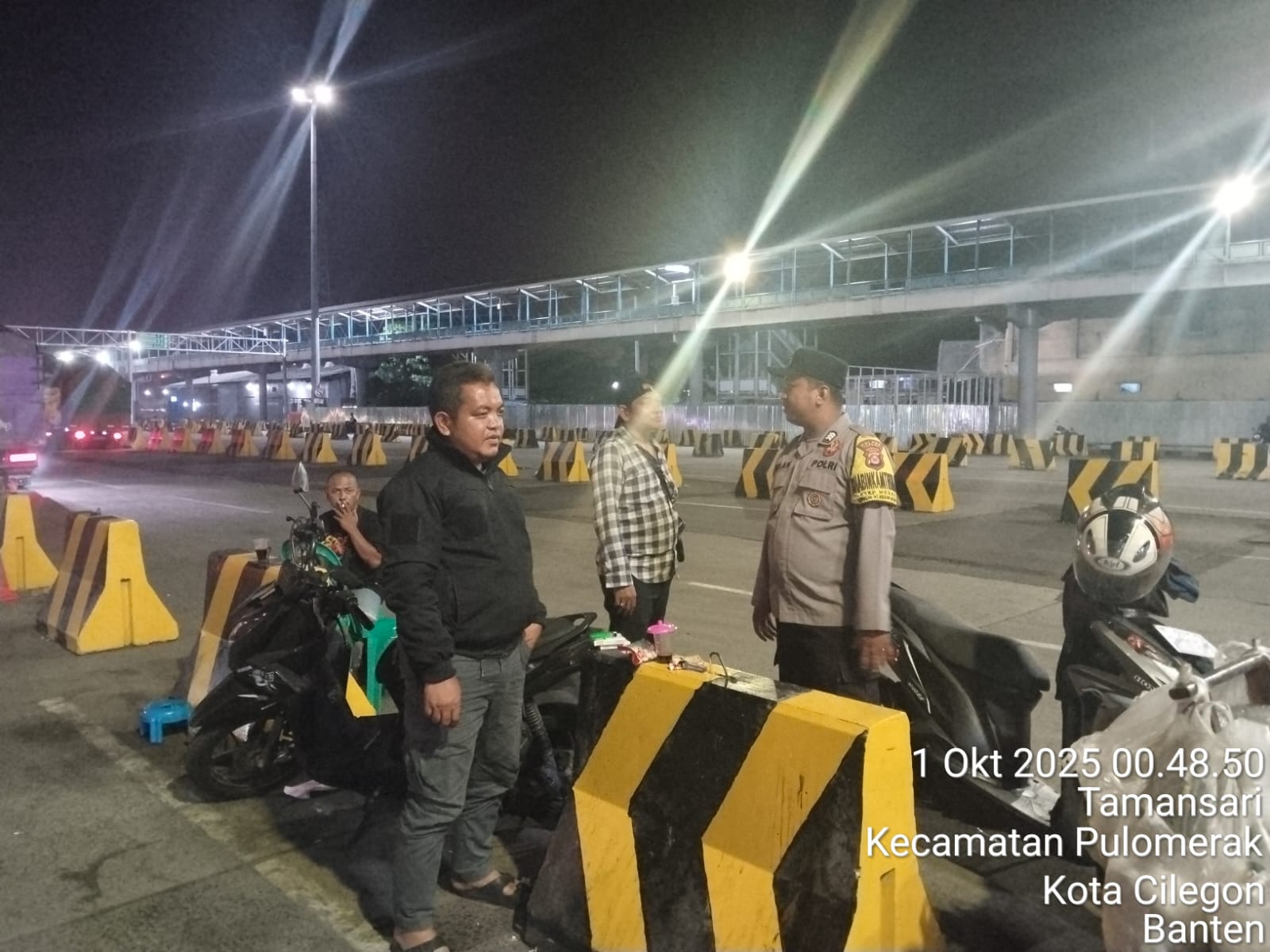 Cilegon - Personil Polsek Kskp Merak Polres Cilegon melaksanakan patroli di kawasan pelabuhan merak memberikan rasa aman dan damai, Rabu (01/10/2025)