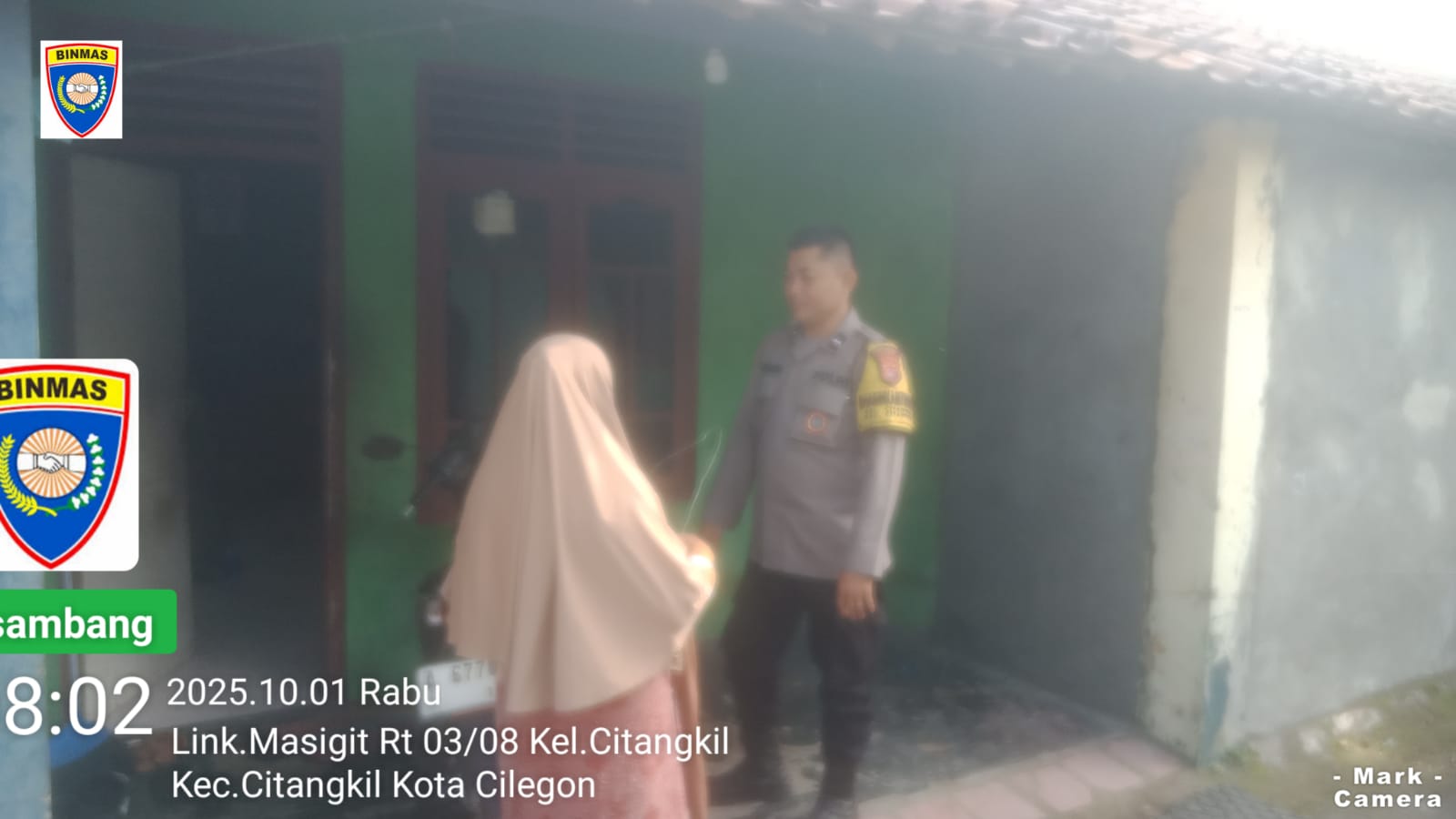 Cilegon - Bhabinkamtibmas Polsek Ciwandan Polres Cilegon Polda Banten  Melaksanakan kegiatan Dialogis/Sambang Door to Door Sistem (DDS) Di daerah binaannya serta memberikan Pesan-pesan Kamtibmas Guna Menciptakan situasi Harkamtibmas yang Aman dan nyaman, Rabu (01/10/2025).