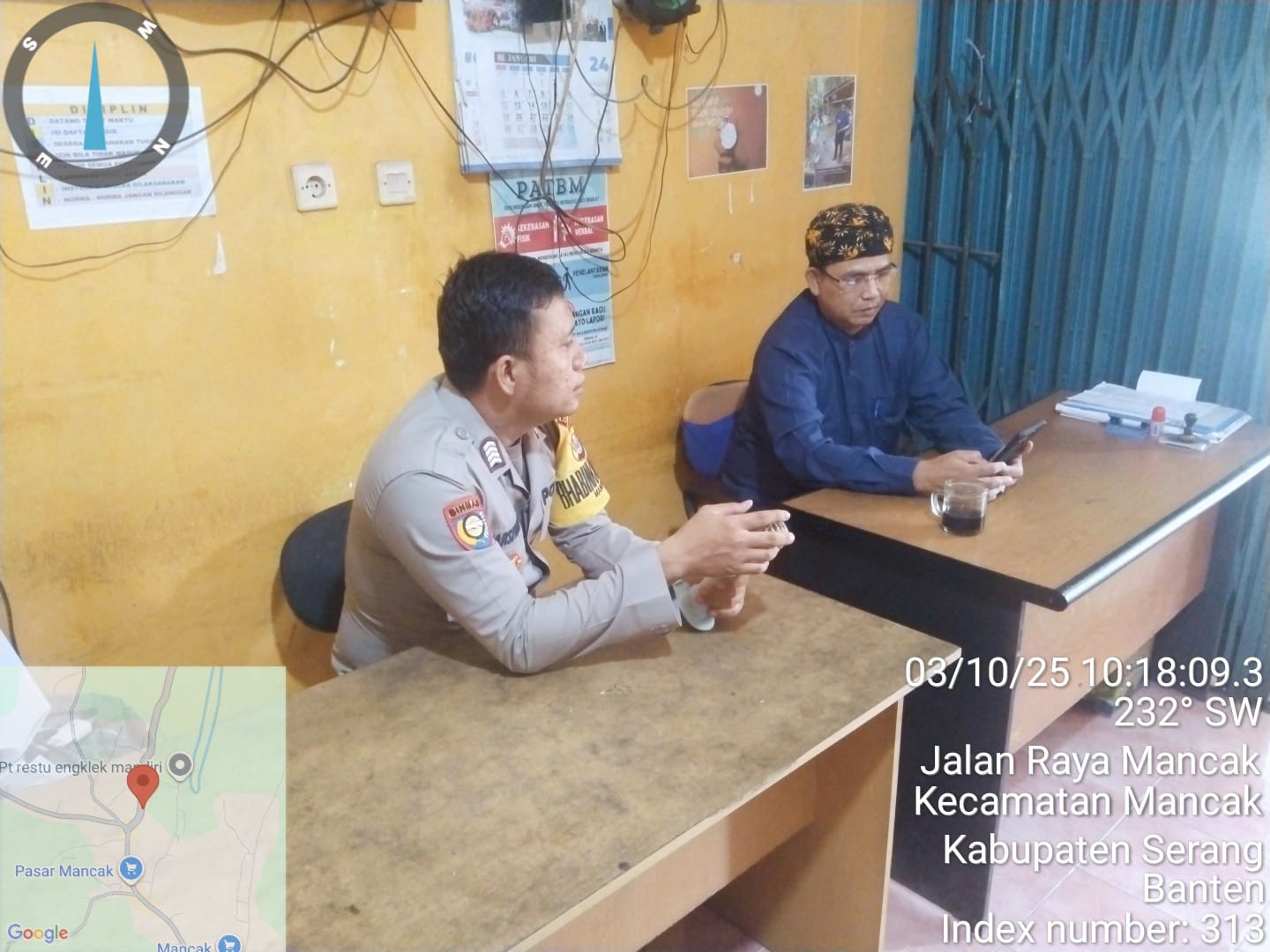 Mancak - Sebagai Pengemban Fungsi Harkamtibmas, Bhabinkamtibmas Polsek Mancak Kegiatan Commander Wish Kapolres Cilegon "TRENDING" dengan cara giat Sambang/DDS dan monitoring antisipasi Gangguan Kamtibmas di wilayah Desa.Mancak Kec. Mancak Kab. Serang. Jumat (03/10/2025).
