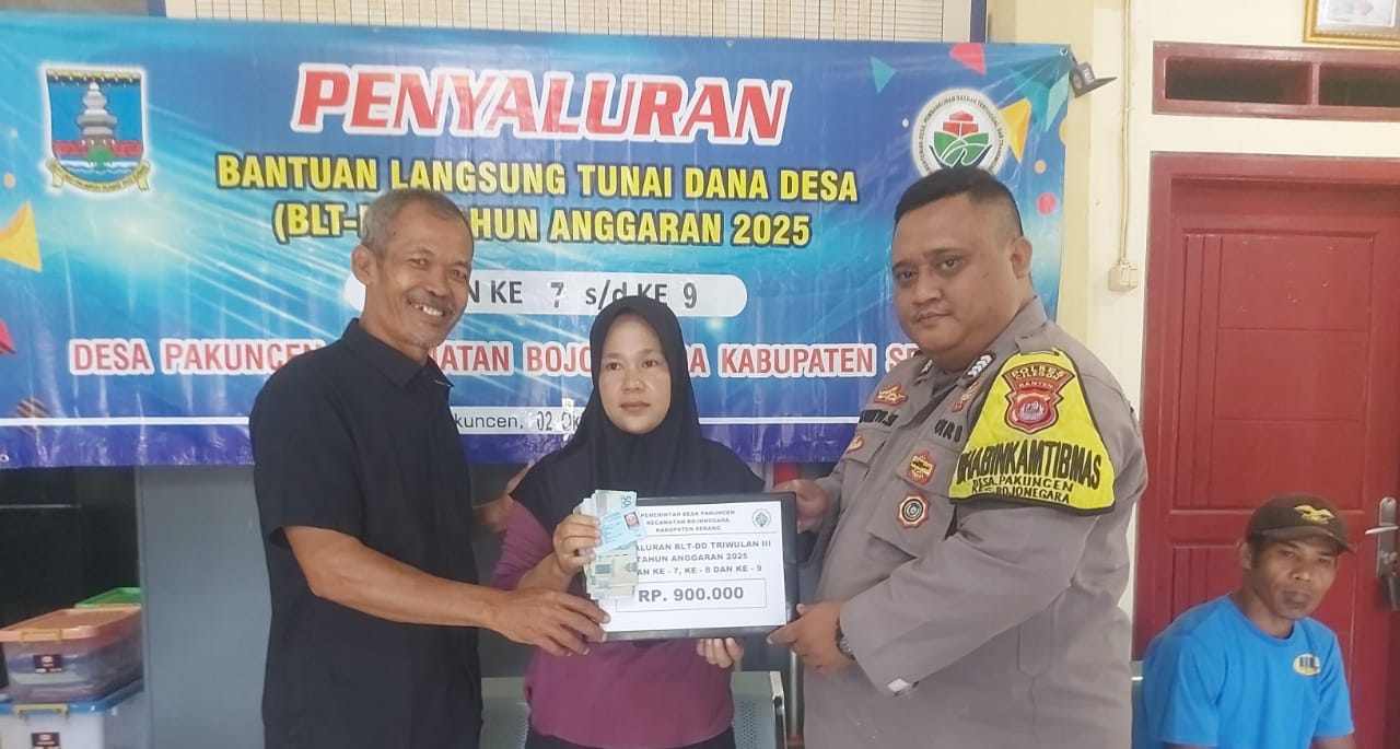 Cilegon ~ Personel Bhabinkamtibmas Polsek Bojonegara  Polres Cilegon Polda Banten, melaksanakan kegiatan pengamanan dan pengawalan penyaluran Bantuan Langsung Tunai Dana Desa (BLT-DD) di Desa Pakuncen  , sebagai upaya dalam menghadirkan rasa aman bagi warga masyarakat penerima bantuan tersebut. Jumat (03/10/2025).
