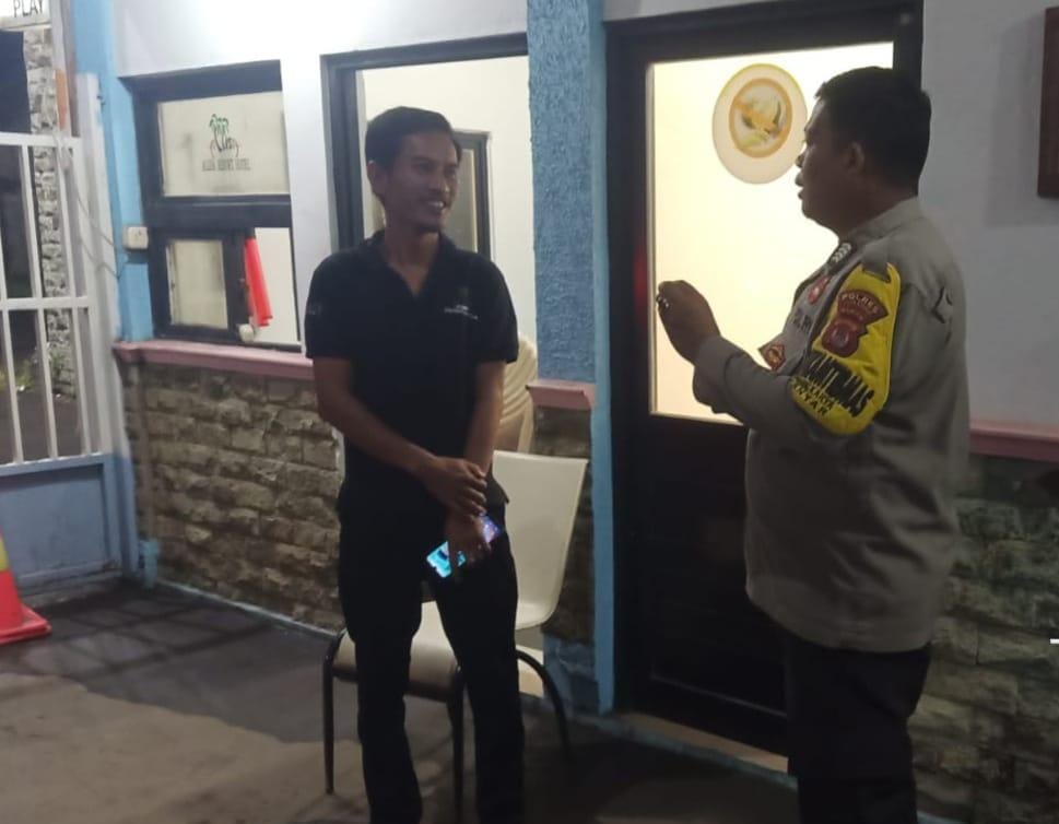Memberian Peaan Himbauan Kamtibmas Polsek Anyar Kepada Satuan Pengamanan Hotel Yang Sedang Bertugas