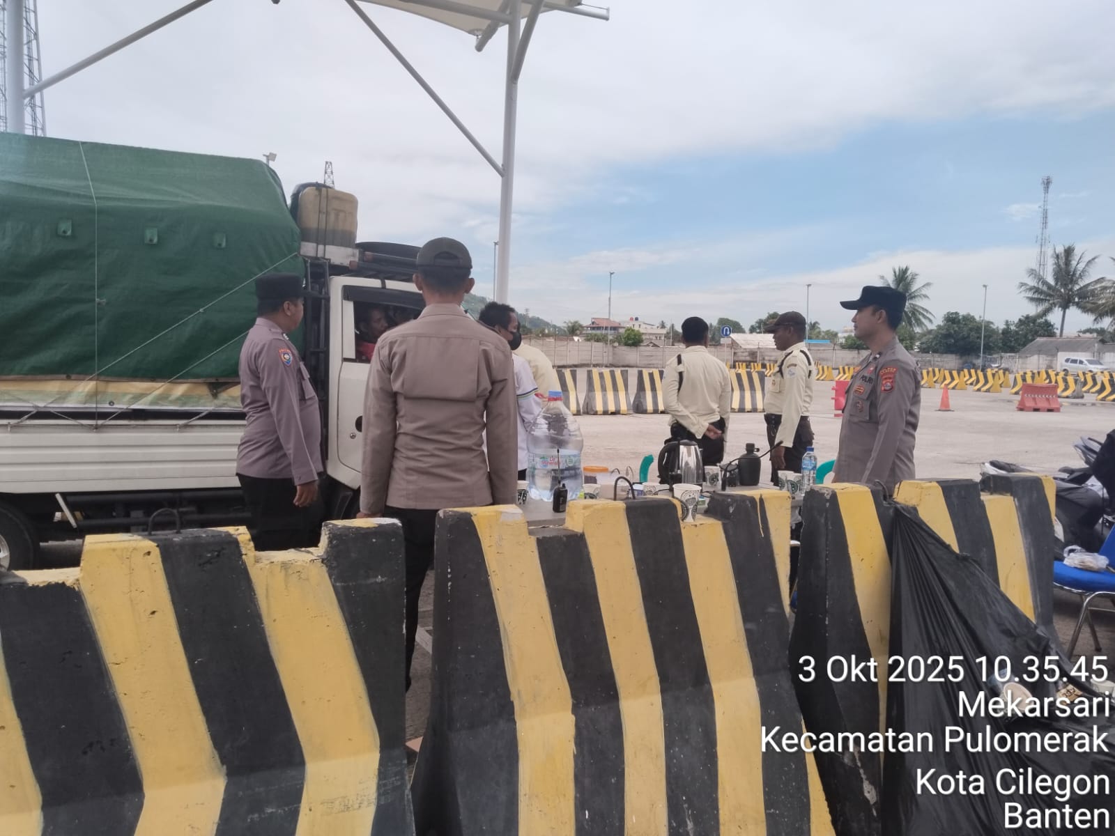Cilegon - Personel Polsek Kskp Merak Polres Cilegon Polda Banten melaksanakan sambang dan patroli kawasan pelabuhan merak dalam rangka menjaga Harkamtibmas di Kawasan Pelabuhan Merak, Jumat (03/10/2025).