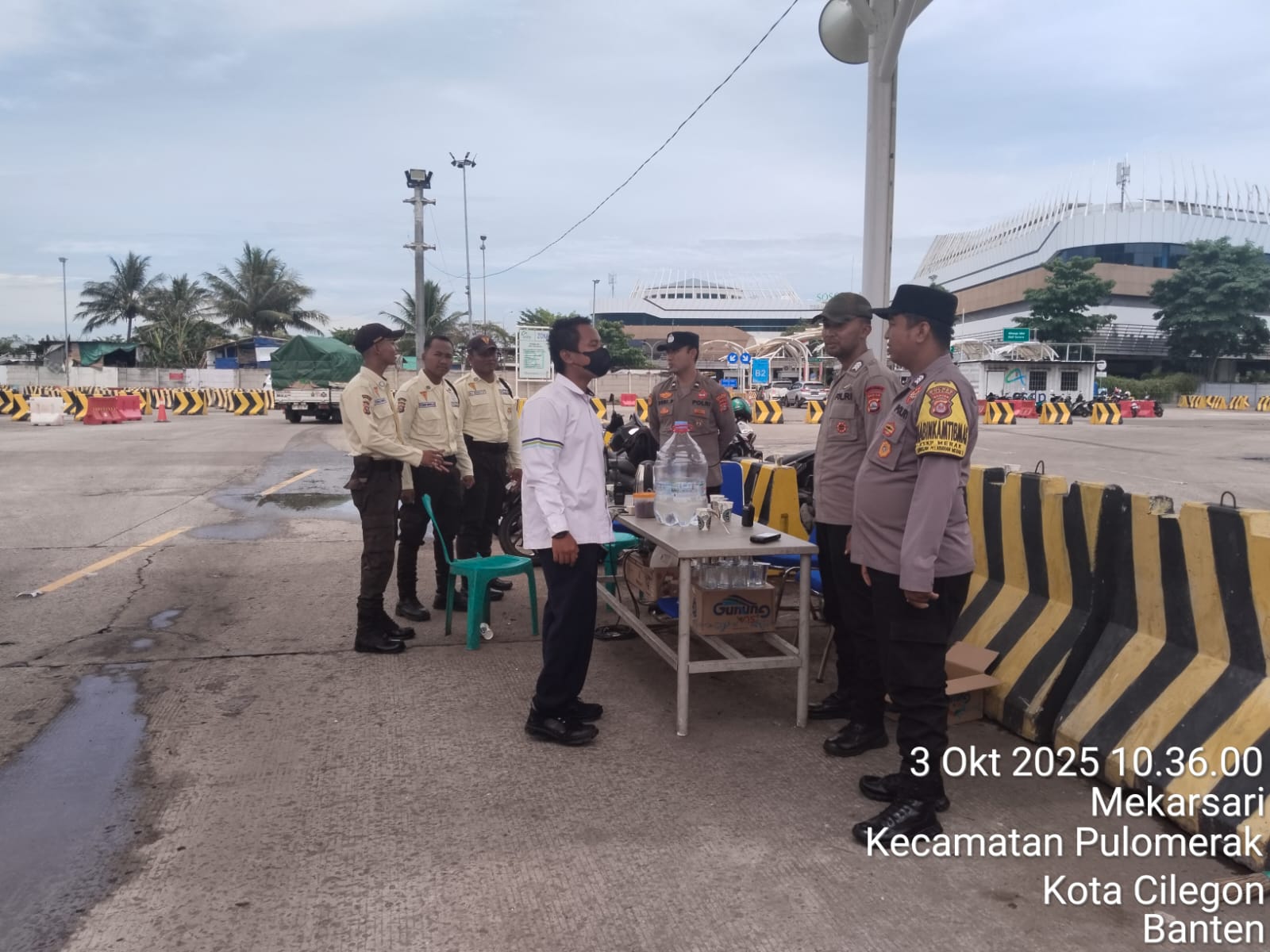 Cilegon - Personel Polsek Kskp Merak Polres Cilegon Polda Banten melaksanakan sambang dan patroli kawasan pelabuhan merak dalam rangka menjaga Harkamtibmas di Kawasan Pelabuhan Merak, Jumat (03/10/2025).