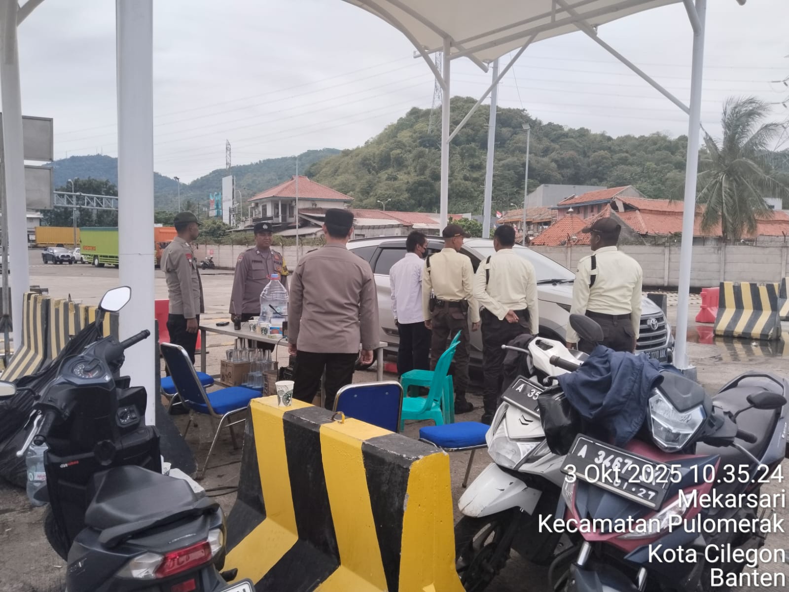 Cilegon - Personel Polsek Kskp Merak Polres Cilegon Polda Banten melaksanakan sambang dan patroli kawasan pelabuhan merak dalam rangka menjaga Harkamtibmas di Kawasan Pelabuhan Merak, Jumat (03/10/2025).