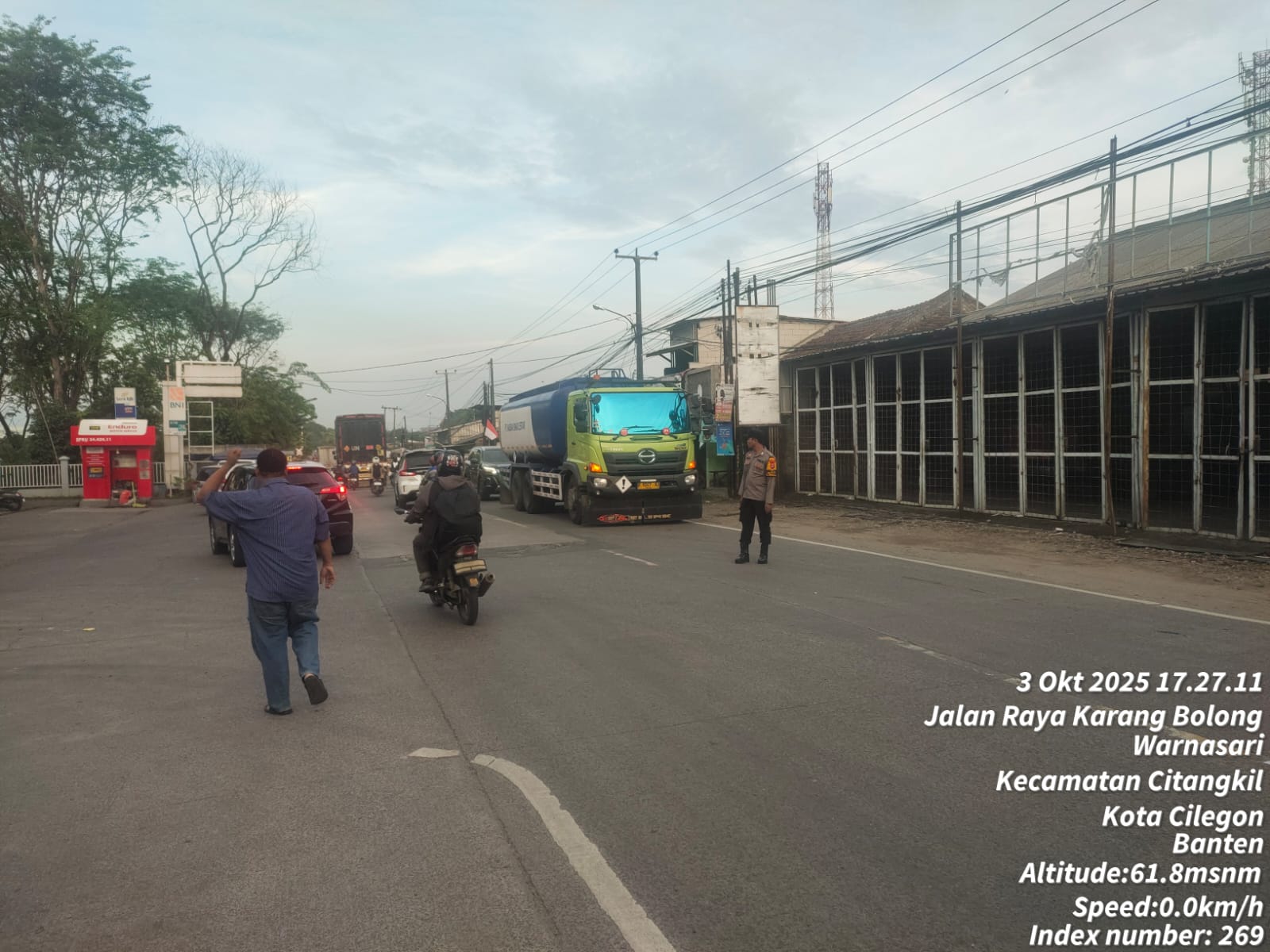 Cilegon - Dalam Mewujudkan Aksi Nyata Pelayanan Kepada Masyarakat,Personil Polsek Ciwandan Polres Cilegon Polda Banten Laksanakan Strong Poin Pengaturan Lalu-lintas,Jum’at (03/10/2025).