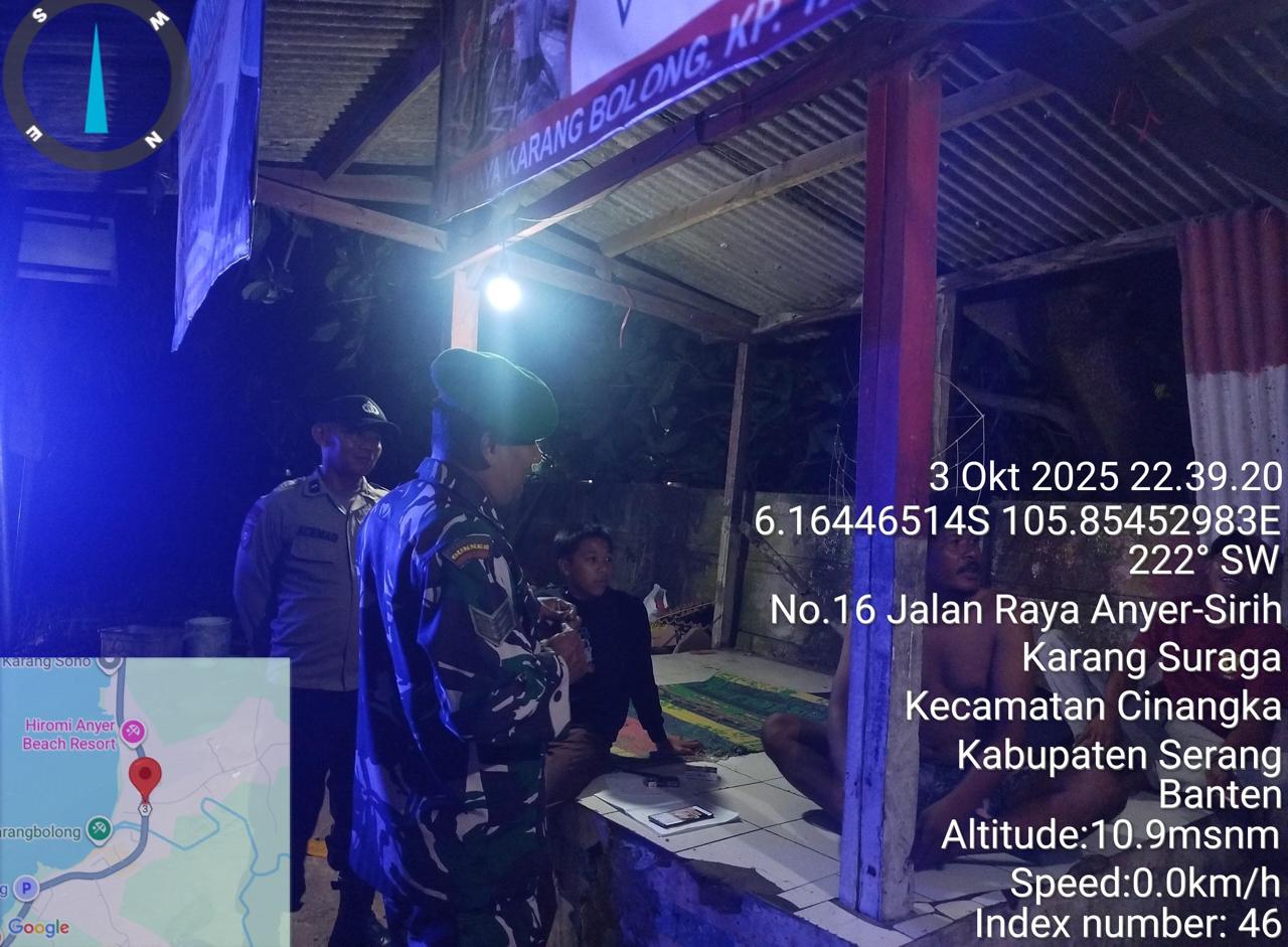 -*POLRES CILEGON*-Polda Banten. Dalam rangka Menjaga situasi kamtibmas kondusif mencegah terjadinya gangguan Kamtibmas Premanisme, Kriminalitas di wilayah Personil Piket Polsek Cinangka mencegah dan Menekan Para Pelaku kejahatan dengan Patroli Blue Light yang di Lakukan Polsek Cinangka gencar Patroli Blue Light dini hari di Wilkum Cinangka Kab Serang . Sabtu (04/10/2025)