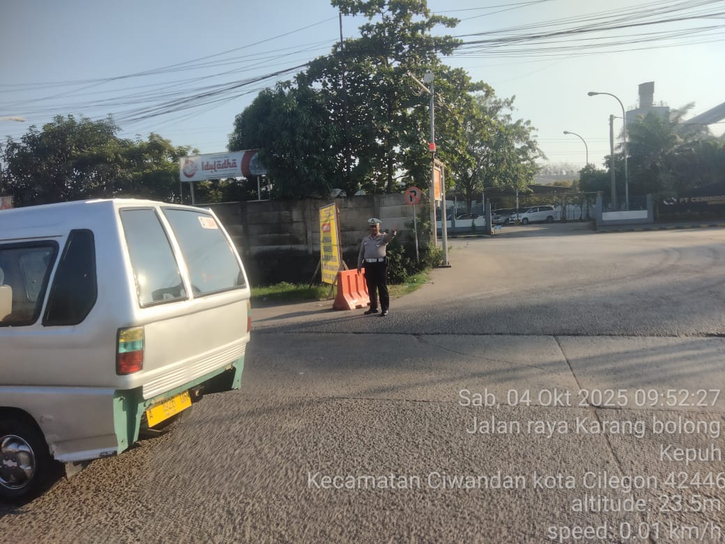 Cilegon - Pada Weekend kali ini Personil Unit Lantas Polsek Ciwandan Polres Cilegon Polda Banten melaksanakan pengaturan lalu lintas di Simpang JLS tepatnya di Pertigaan depan PT. Semen Indonesia Demi Kelancaran Arus Lalu-lintas Wisata, Sabtu (04/10/2025).