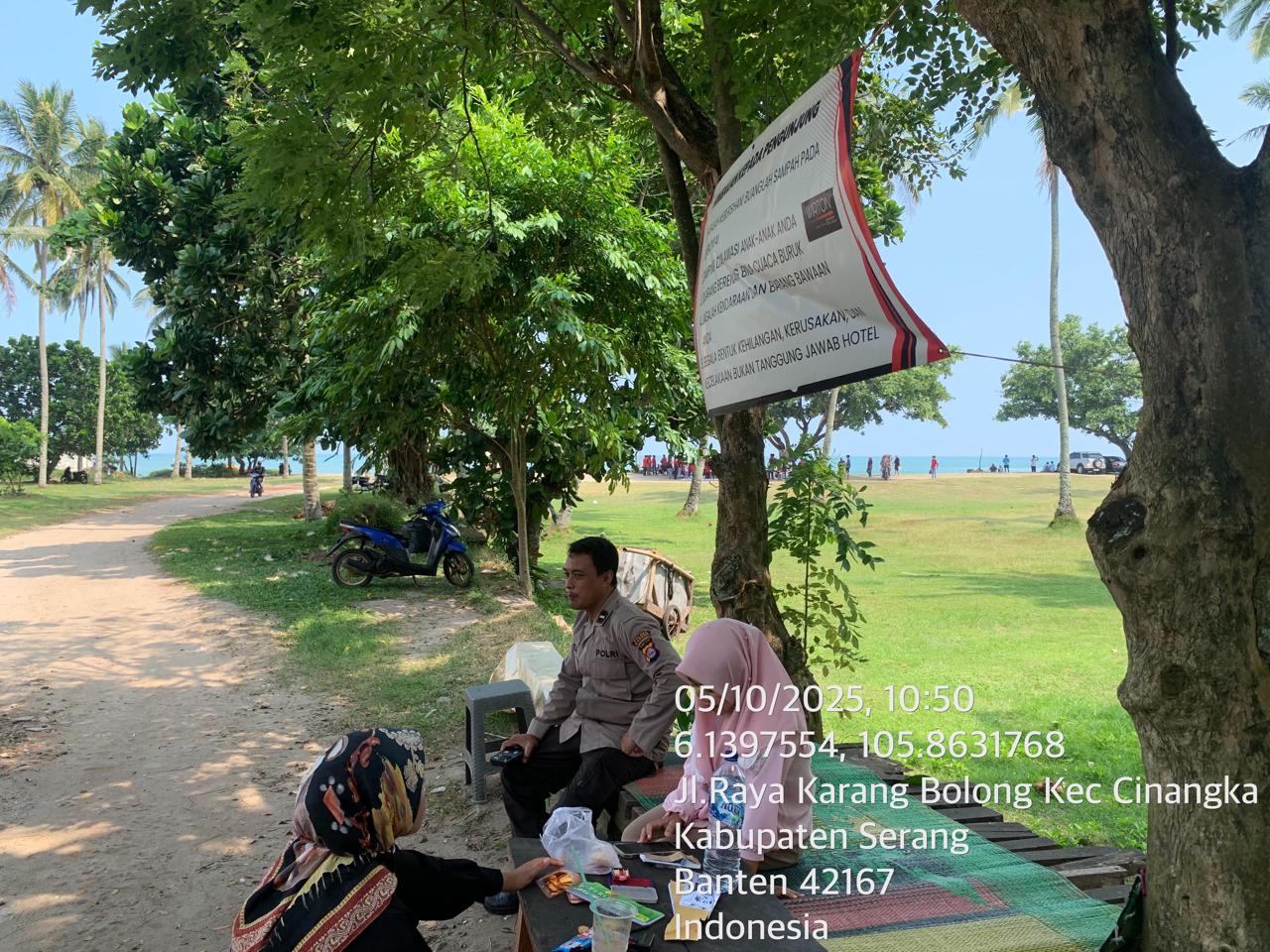 _*POLRES CILEGON*_ | Polsek Cinangka Polres Cilegon Polda Banten melaksanakan kegiatan patroli Serta memberikan Himbauan kepada pengunjung pantai yang berwisata dan Sambang kepada petugas penjaga pantai dan juga antisipasi harkamtibmas di Wilayah Hukum Polsek Cinangka Polres Cilegon Polda Banten, Minggu (05/10/2025).