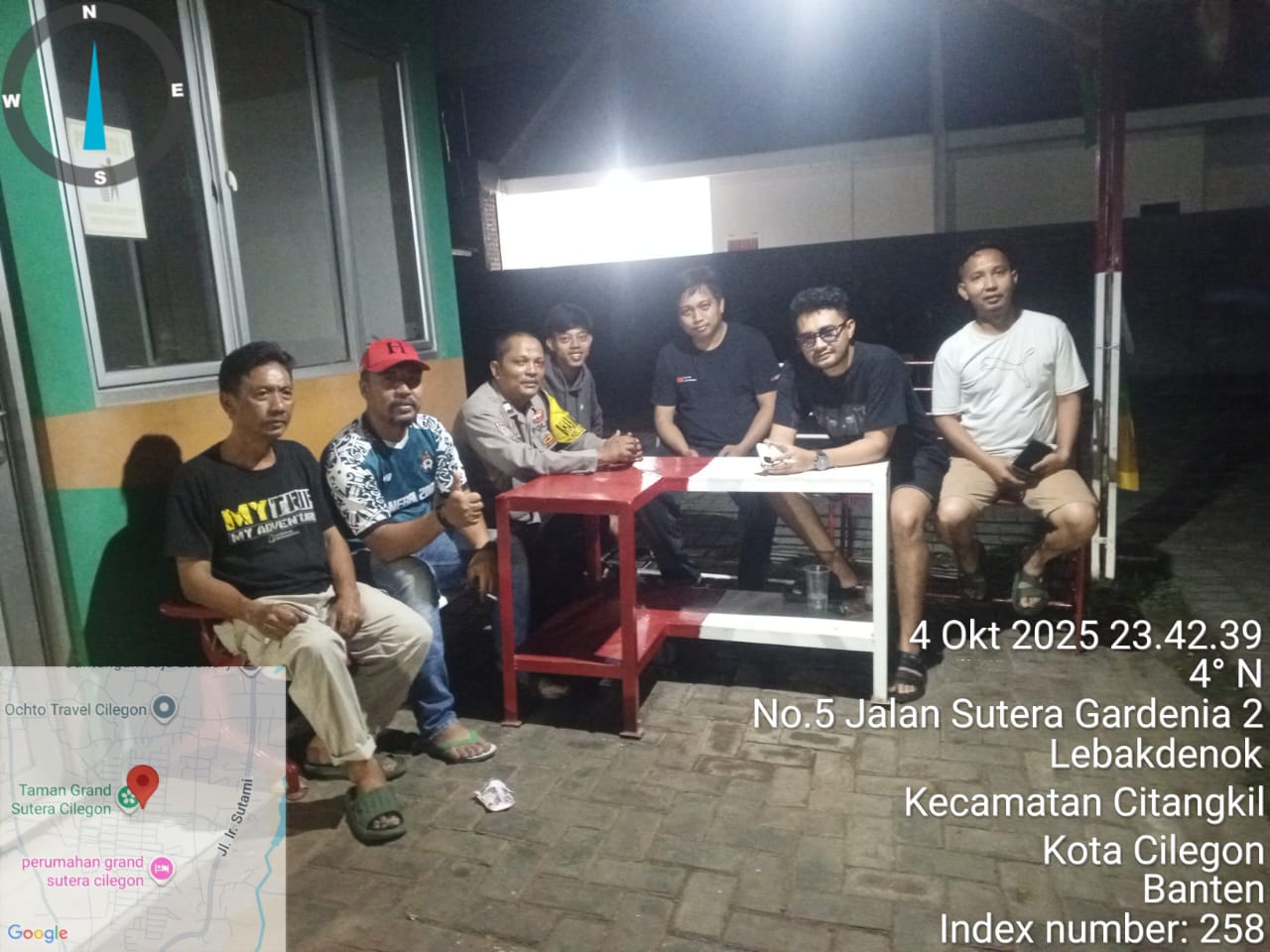Cilegon - Guna Mencegah Terjadinya Tindak Kejahatan dan Menggiatkan Patroli Pos Ronda Siskamling di Pemukiman warga masyarakat,Personil Polsek Ciwandan Polres Cilegon Polda Banten Mengajak dan memantau pelaksanaan ronda siskamling di lingkungan daerah hukum Polsek Ciwandan, Minggu (05/10/2025).