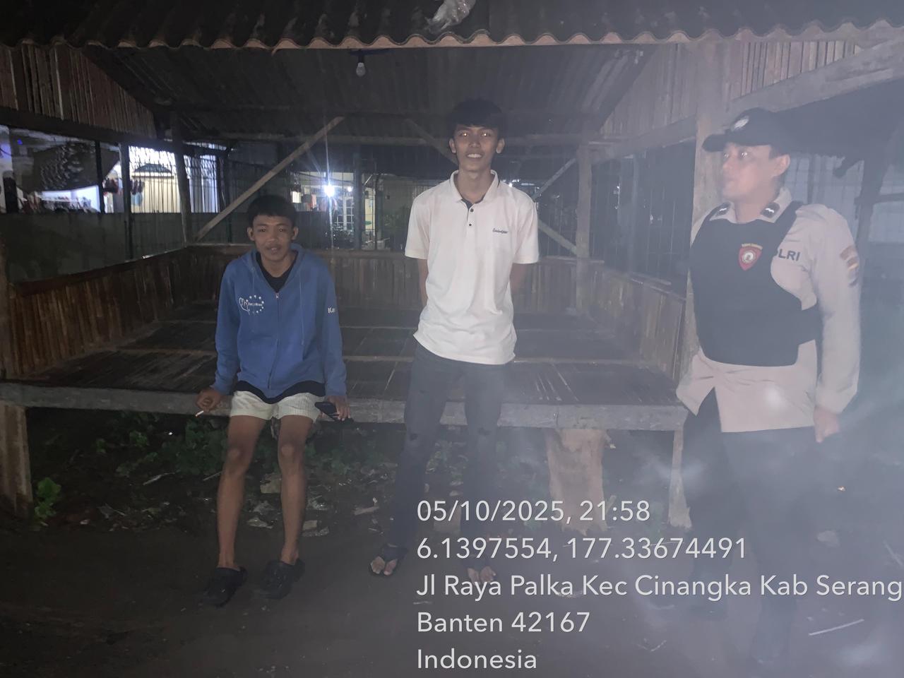 *Polres Cilegon* || Personil Bhabinkamtibmas Polsek Cinangka melaksanakan Program Komandan Wish Kapolda Banten RONDA SATKAMLING menyampaikan komunikasi dengan Petugas Siskamling agar berperan aktif dalam menciptakan Harkamtibmas yang aman dan Kondusif, Senin (06/10/2025).