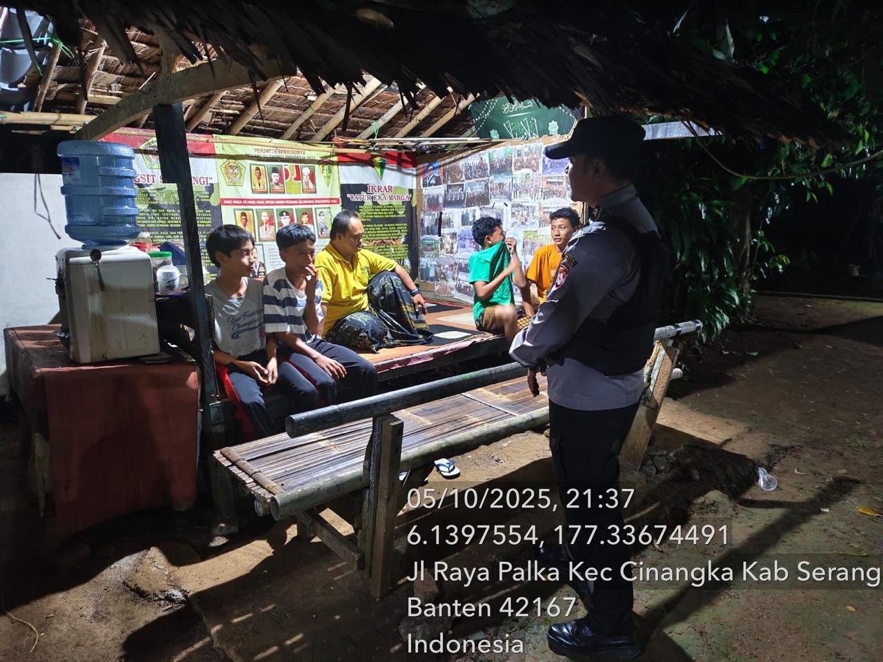 *Polres Cilegon* || Personil Bhabinkamtibmas Polsek Cinangka melaksanakan Program Komandan Wish Kapolda Banten RONDA SATKAMLING menyampaikan komunikasi dengan Petugas Siskamling agar berperan aktif dalam menciptakan Harkamtibmas yang aman dan Kondusif, Senin (06/10/2025).
