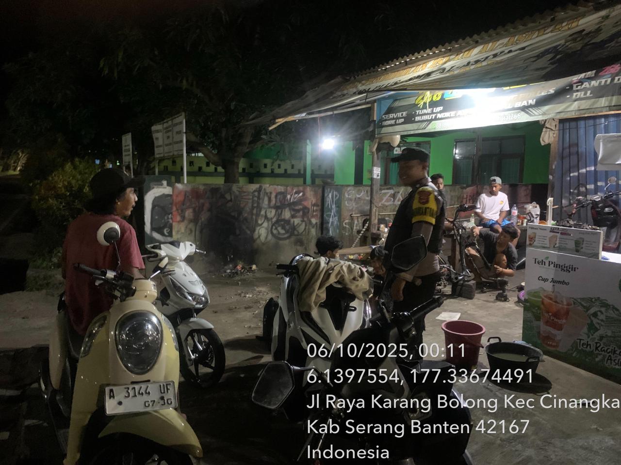 -*POLRES CILEGON*-Polda Banten. Dalam rangka Menjaga situasi kamtibmas kondusif mencegah terjadinya gangguan Kamtibmas Premanisme, Kriminalitas di wilayah Personil Piket Polsek Cinangka mencegah dan Menekan Para Pelaku kejahatan dengan Patroli Blue Light yang di Lakukan Polsek Cinangka gencar Patroli Blue Light dini hari di Wilkum Cinangka Kab Serang . Senin (06/10/2025)