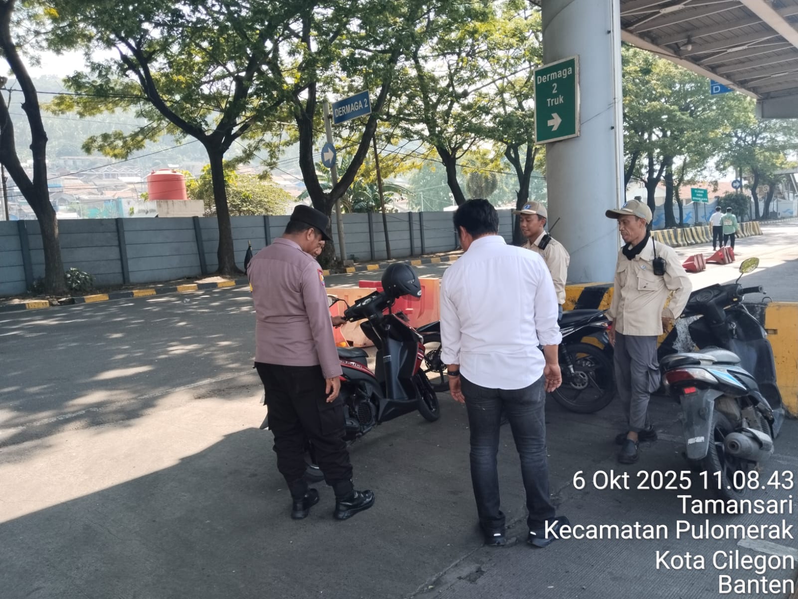 Cilegon - Personel Polsek Kskp Merak Polres Cilegon Polda Banten melaksanakan sambang dan patroli kawasan pelabuhan merak dalam rangka menjaga Harkamtibmas di Kawasan Pelabuhan Merak, Senin (06/10/2025).