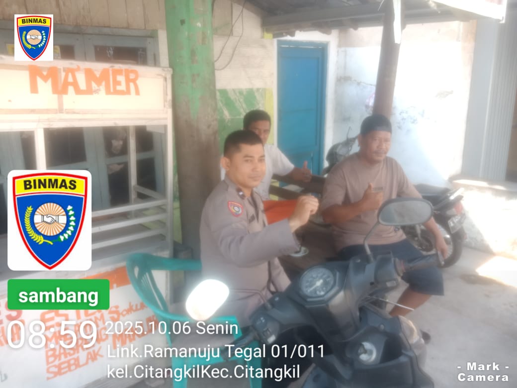 Cilegon -  Bhabinkamtibmas Polsek Ciwandan Polres Cilegon Polda Banten Melalui Sambang Dialogis menjaga kamtibmas selalu kondusif dan aman serta untuk mengetahui situasi dan kondisi terkini yang ada di Daerah binaannya,Sekaligus sebagai sarana silaturahmi dengan berbagai elemen yang ada di masyarakat, Senin (06/10/2025).