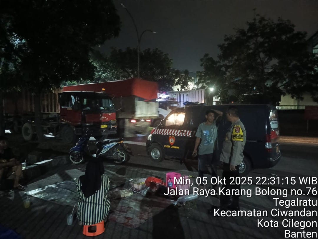 Cilegon - Polsek Ciwandan Polres Cilegon Polda Banten kembali menunjukkan komitmennya dalam menciptakan keamanan dan ketertiban masyarakat (kamtibmas) yang kondusif melalui Kegiatan Patroli Malam, Kegiatan ini dilakukan secara rutin dengan berkeliling di daerah hukum Polsek Ciwandan, Senin (06/10/2025).