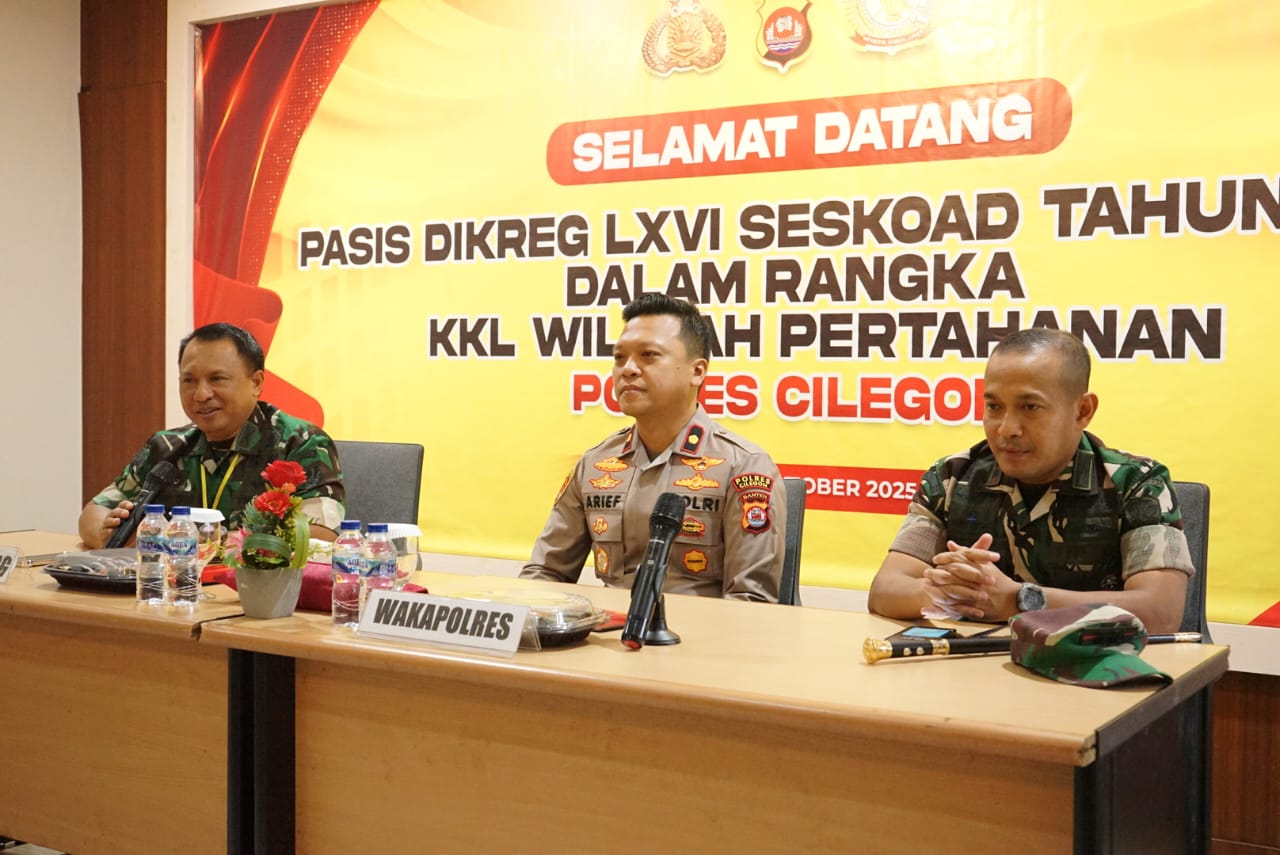 Cilegon – Polres Cilegon Polda Banten menerima kunjungan kegiatan Kuliah Kerja Lapangan (KKL) Perwira Siswa (Pasis) Pendidikan Reguler (Dikreg) LXVI Sekolah Staf dan Komando Angkatan Darat (Seskoad) Tahun 2025, Kegiatan yang berlangsung di Rupatama Polres Cilegon ini menjadi wadah penting untuk memperkuat sinergitas antara TNI dan Polri dalam mendukung program strategis nasional. Kamis (9/10/2025).
