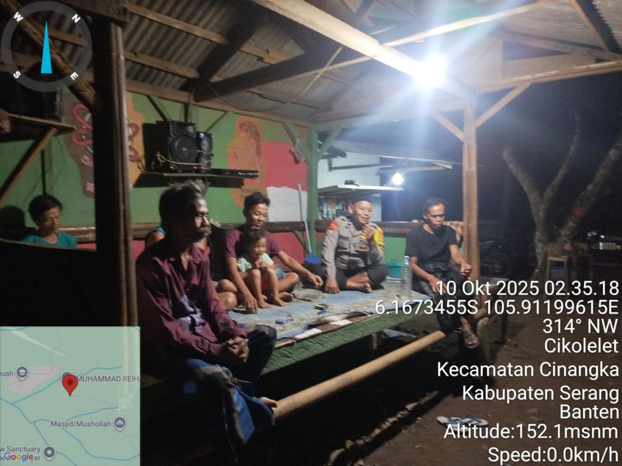 *Polres Cilegon* || Personil Bhabinkamtibmas Polsek Cinangka melaksanakan Program Komandan Wish Kapolda Banten RONDA SATKAMLING menyampaikan komunikasi dengan Petugas Siskamling agar berperan aktif dalam menciptakan Harkamtibmas yang aman dan Kondusif, Jumat (10/10/2025).