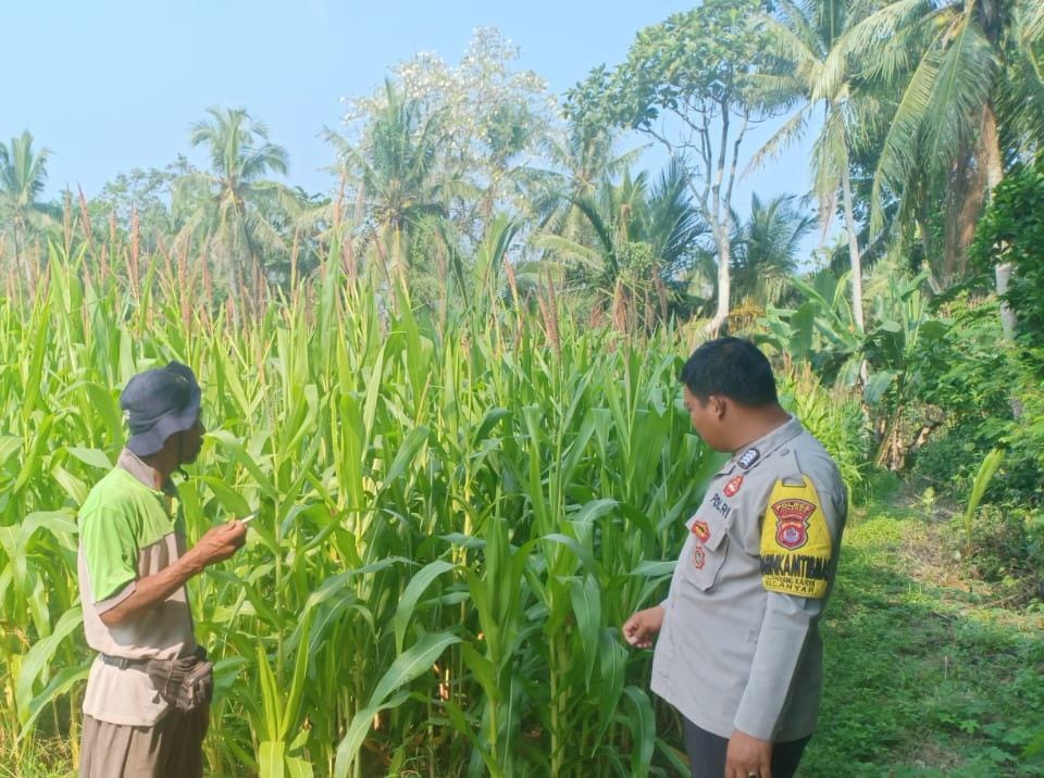 Bersama Petani Dan Polsek Anyar Monitorung Lahan Tanaman Jagung