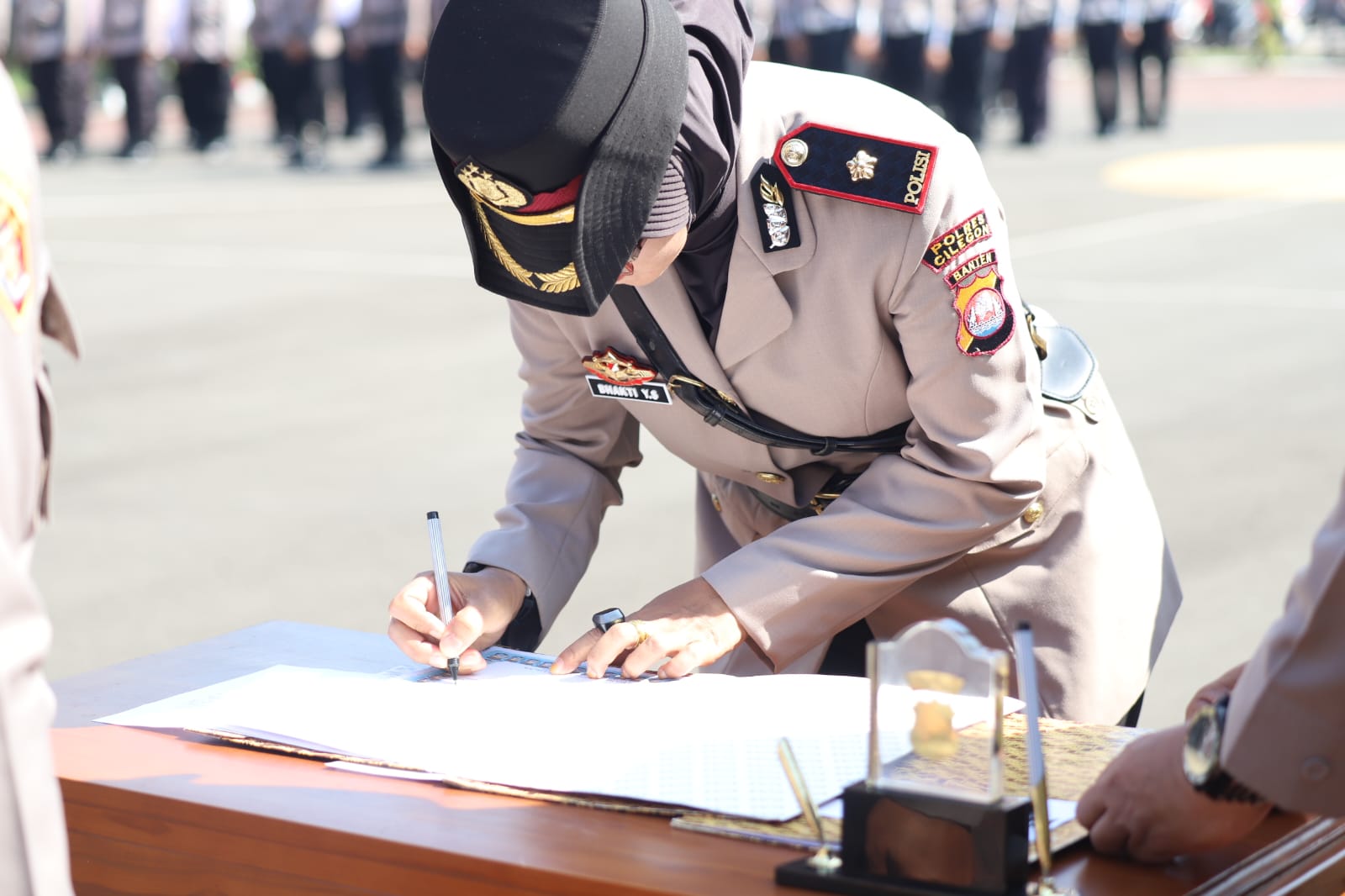 Rangkaian kegiatan sertijab diawali dengan pengambilan sumpah jabatan, disaksikan oleh para Pejabat Utama dan personel Polres Cilegon, kemudian dilanjutkan dengan penandatanganan fakta integritas sebagai bentuk komitmen moral dan profesionalisme pejabat baru dalam melaksanakan tugas.