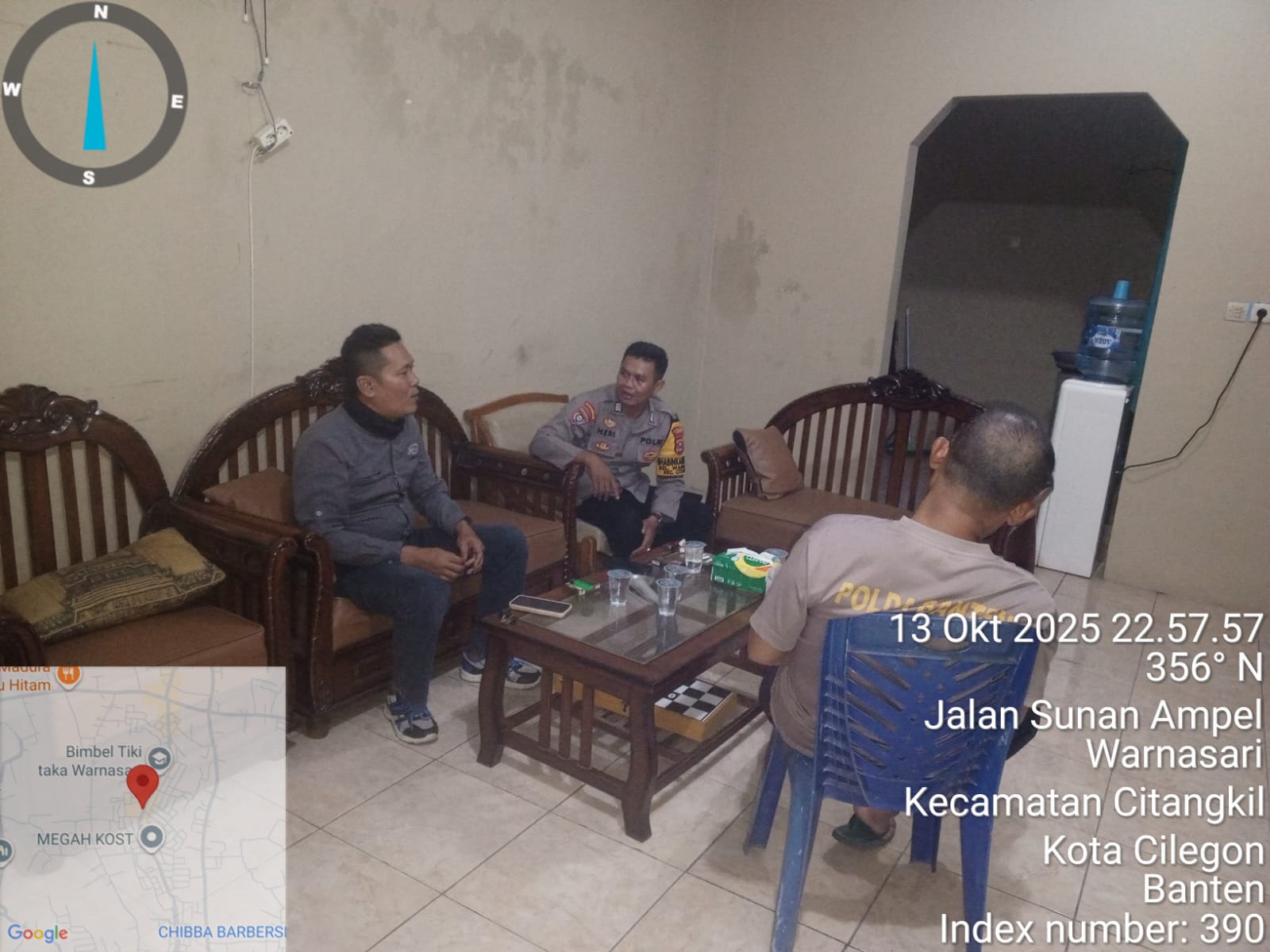 Cilegon - Bhabinkamtibmas Polsek Ciwandan Polres Cilegon Polda Banten melaksanakan kegiatan Sambang Dialogis Dari Rumah Kerumah/Door to Door Sistem (DDS) Di daerah binaannya serta Berikan Pesan-pesan Kamtibmas Guna Menciptakan situasi Harkamtibmas yang Aman dan nyaman, Selasa (14/10/2025).