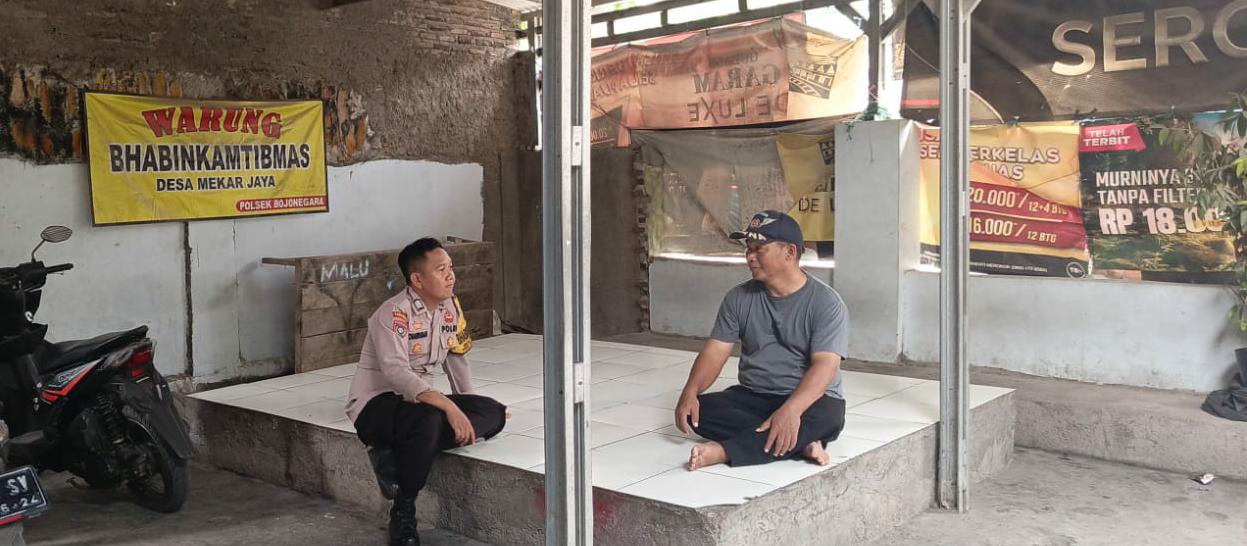 Cilegon ~  Bhabinkamtibmas Polsek Bojonegara Polres Cilegon Polda Banten Sambang dan silaturahmi dengan masyarakat merupakan salah satu tugas seorang bhabinkamtibmas untuk mengetahui situasi Kamtibmas Desa binaan dalam menjalin silaturahmi dengan Warga Desa. Wanakarta  di Warung Bhabinkamtibmas, Rabu (15/10/2025).