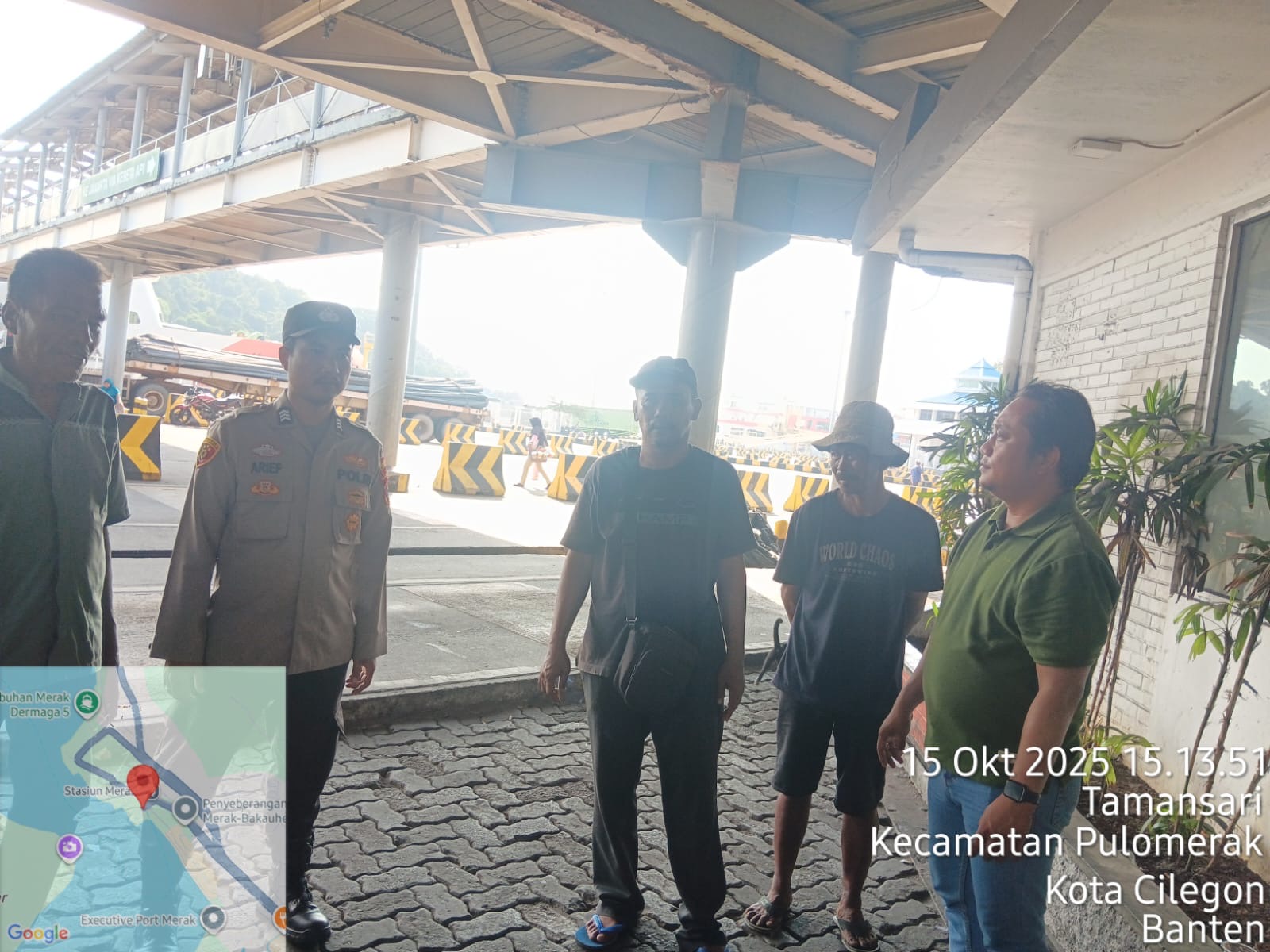 Cilegon - Personel Polsek Kskp Merak Polres Cilegon Polda Banten melaksanakan sambang dan patroli kawasan pelabuhan merak dalam rangka menjaga Harkamtibmas di Kawasan Pelabuhan Merak, Rabu (15/10/2025).