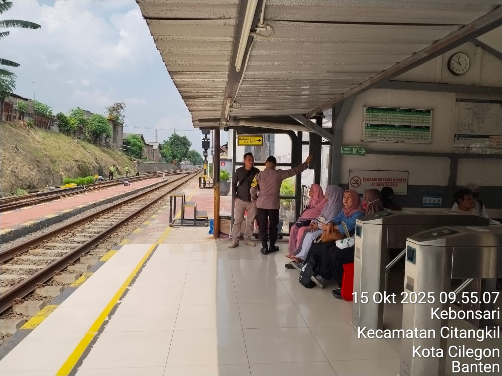 Cilegon - Personil Polsek Ciwandan Polres Cilegon Polda Banten melaksanakan giat patroli Dan dengan sambangi Petugas Stasiun Kereta Api dan penjaga pintu perlintasan kereta api,Rabu (15/10/2025).