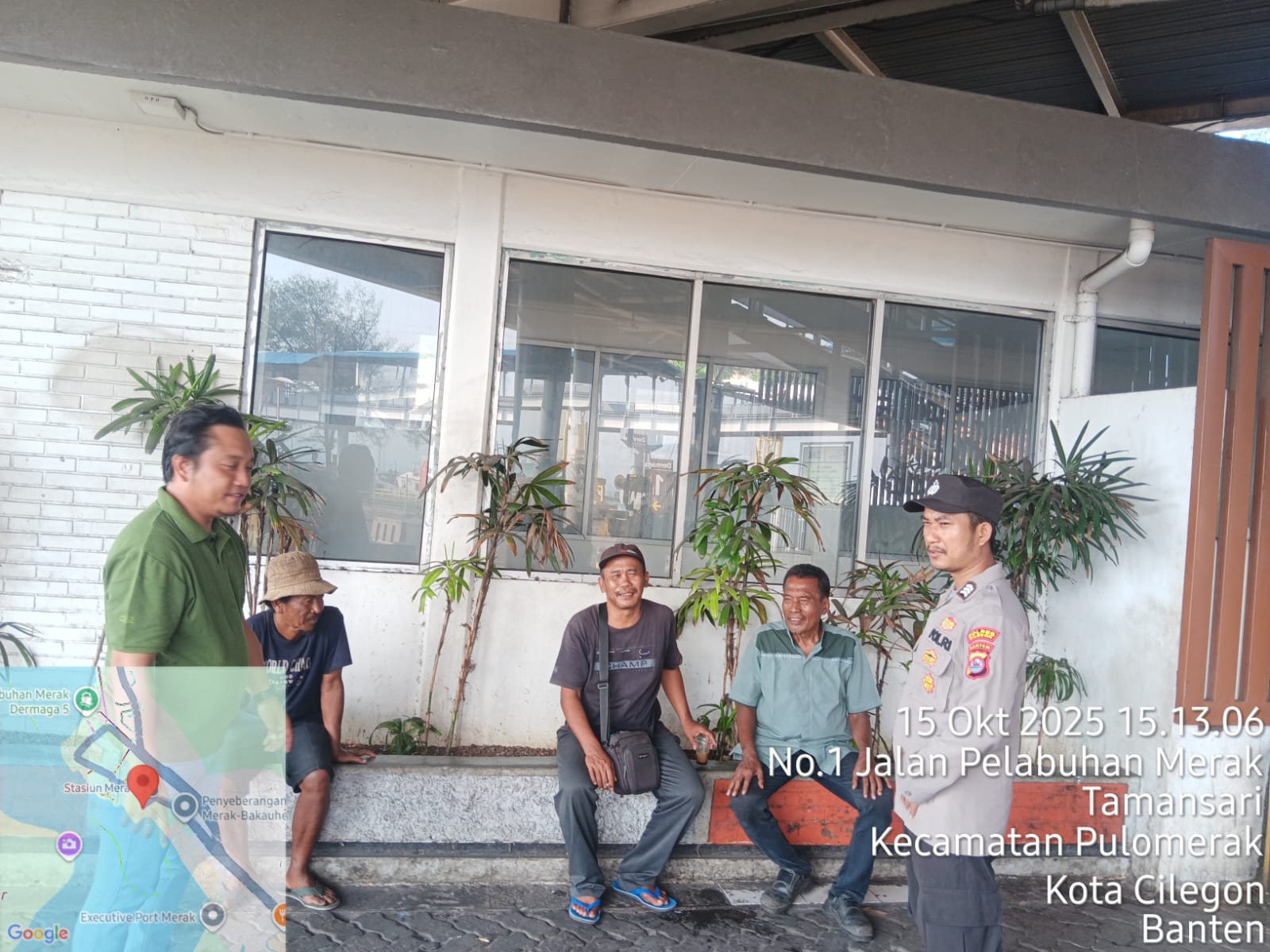 Cilegon - Personel Polsek Kskp Merak Polres Cilegon Polda Banten melaksanakan sambang dan patroli kawasan pelabuhan merak dalam rangka menjaga Harkamtibmas di Kawasan Pelabuhan Merak, Rabu (15/10/2025).