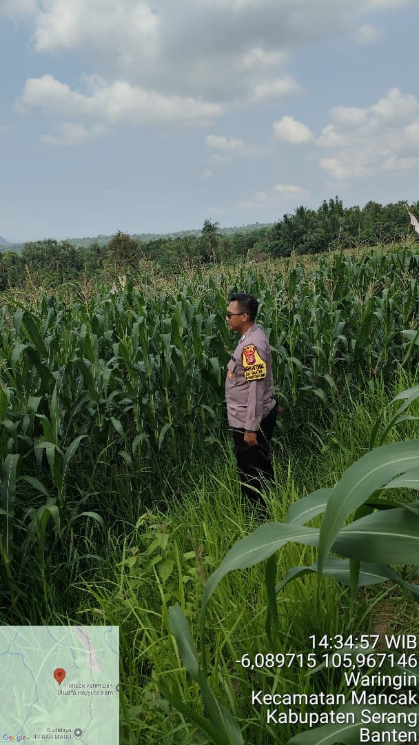 Cilegon - Polsek KP Banten Polres Cilegon Polda Banten berkolaborasi dengan Polsek Mancak melaksanakan giat pengecekan lahan Pertanian Jagung. Rabu (15/10).