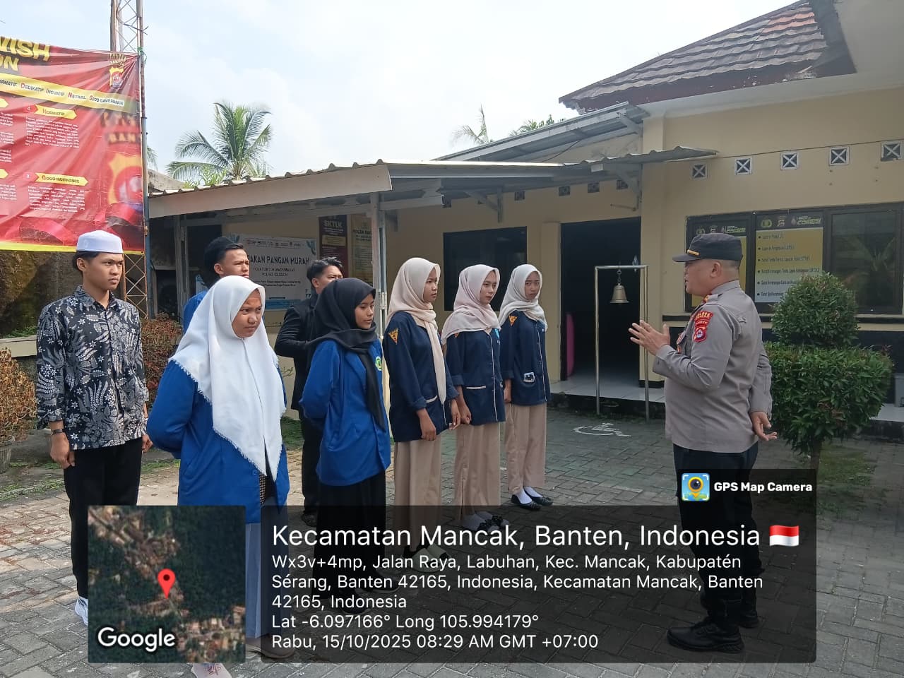 Kapolres Cilegon Polda Banten AKBP Dr. Martua Raja Taripar Laut Silitonga melalui Kapolsek Mancak  IPTU KHAIRUL Beserta Anggota Melaksanakan Kegiatan Apel dan atensi ke Anak Pkl.