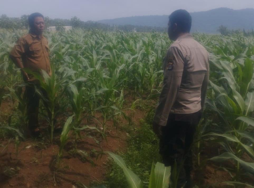 Dalam kesempatan tersebut bahwa Bhabinkamtibmas Polsek Cinangka bersama Kelompok Tani Kec. Cinangka Kab Serang Monitoring dan Pedampingan kegiatan Poktan di wilayahnya lahan yang sedang ditanami Tanaman Jagung dan Palawija.