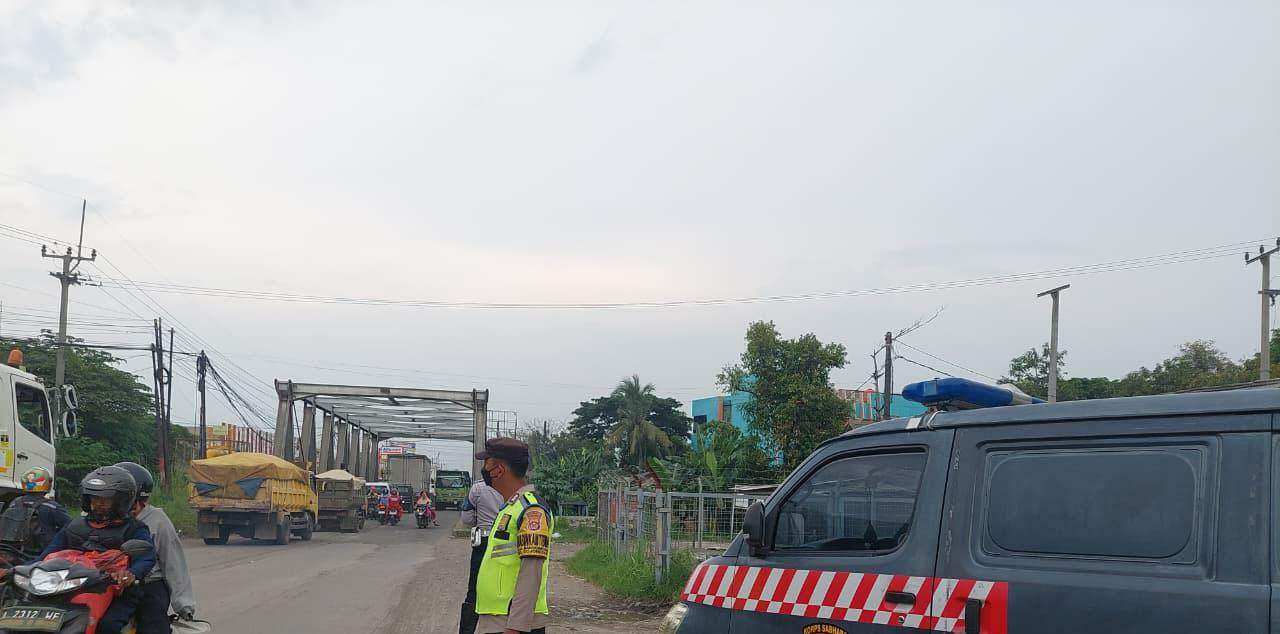 Personel Polsek Bojonegara Atur Lalu-Lintas Dalam Pelayanan Sore Hari di Jembatan Teratai