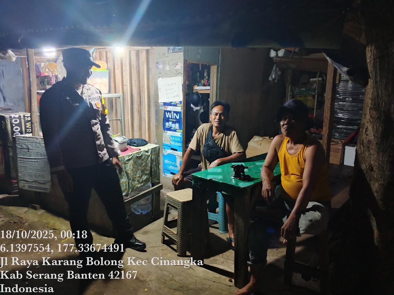 *Cilegon* – Dalam Rangka Pencegahan Kejahatan Jalanan dan Memelihara situasi keamanan dan menjaga serta memberikan rasa aman dan nyaman di masyarakat,Salah satu upaya untuk mewujudkan hal tersebut sebagaimana yang dilakukan oleh Personil Polsek Cinangka Polres Cilegon Polda Banten melaksanakan giat patroli blue light malam hari hingga menjelang pagi, Sabtu (18/10/2025).