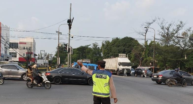 Cilegon - Pelayanan Kepada Warga Masyarakat dan Guna menciptakan situasi lalu lintas yang aman, tertib dan lancar, Personel Polsek Cibeber Polres Cilegon Polda Banten secara rutin melaksanakan pengaturan lalu lintas di sekitar Traffic Light PCI kota Cilegon.