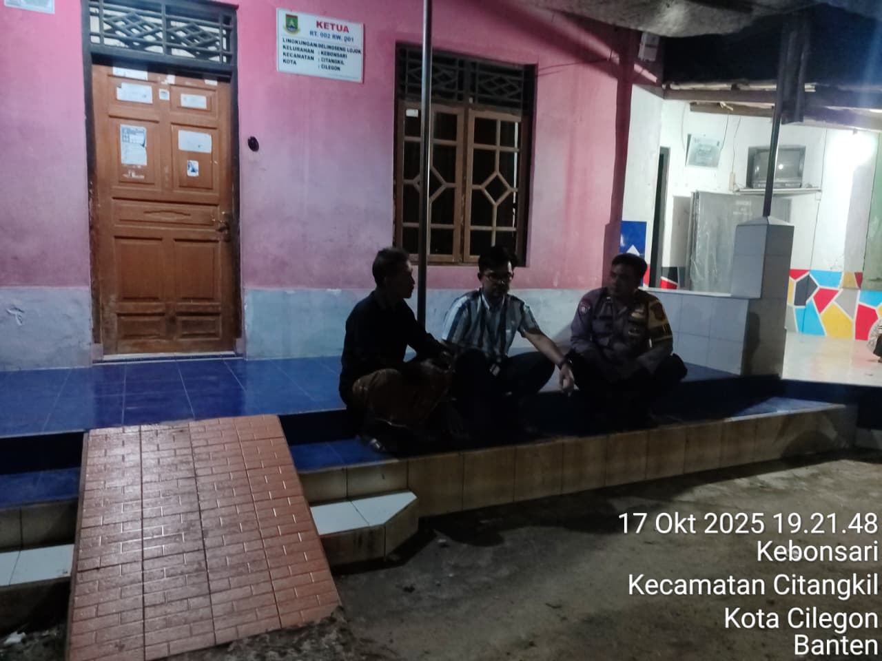 Cilegon - Bhabinkamtibmas Polsek Ciwandan Polres Cilegon Polda Banten Lakukan Sambang Malam guna mengantisipasi aksi kejahatan pada daerah binaan dan memberikan rasa aman dan nyaman kepada warga binaan, Sabtu (18/10/2025).