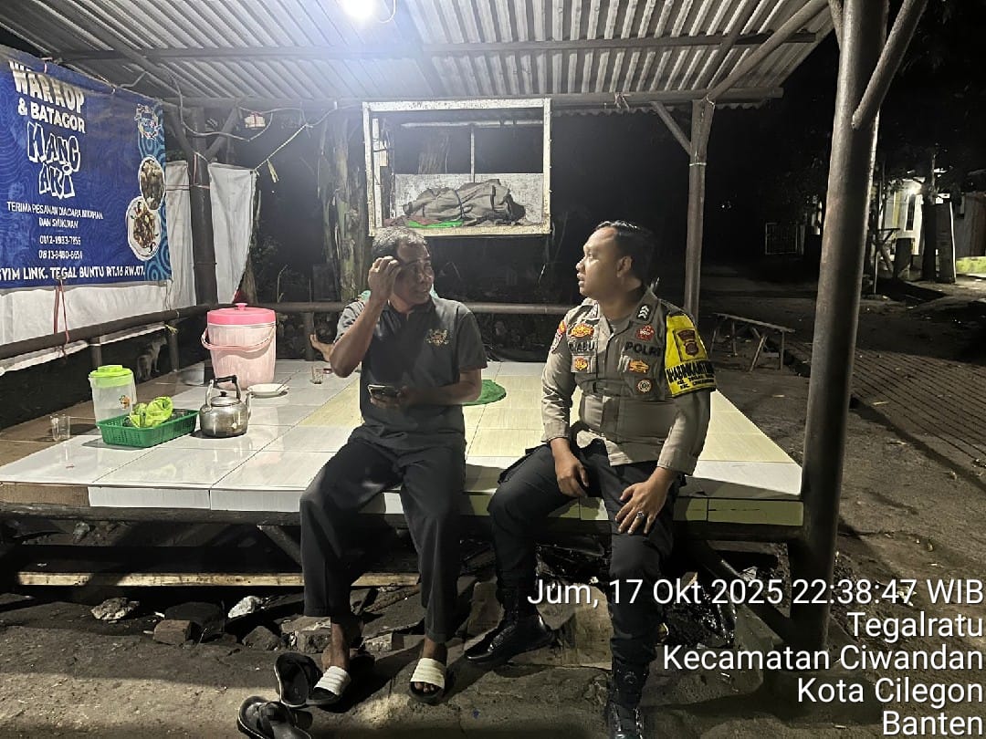 Cilegon - Guna Mencegah Terjadinya Tindak Kejahatan dan Menggiatkan Patroli Pos Ronda Siskamling di Pemukiman warga masyarakat,Personil Polsek Ciwandan Polres Cilegon Polda Banten Mengajak dan memantau pelaksanaan ronda siskamling di lingkungan daerah hukum Polsek Ciwandan, Sabtu (18/10/2025).