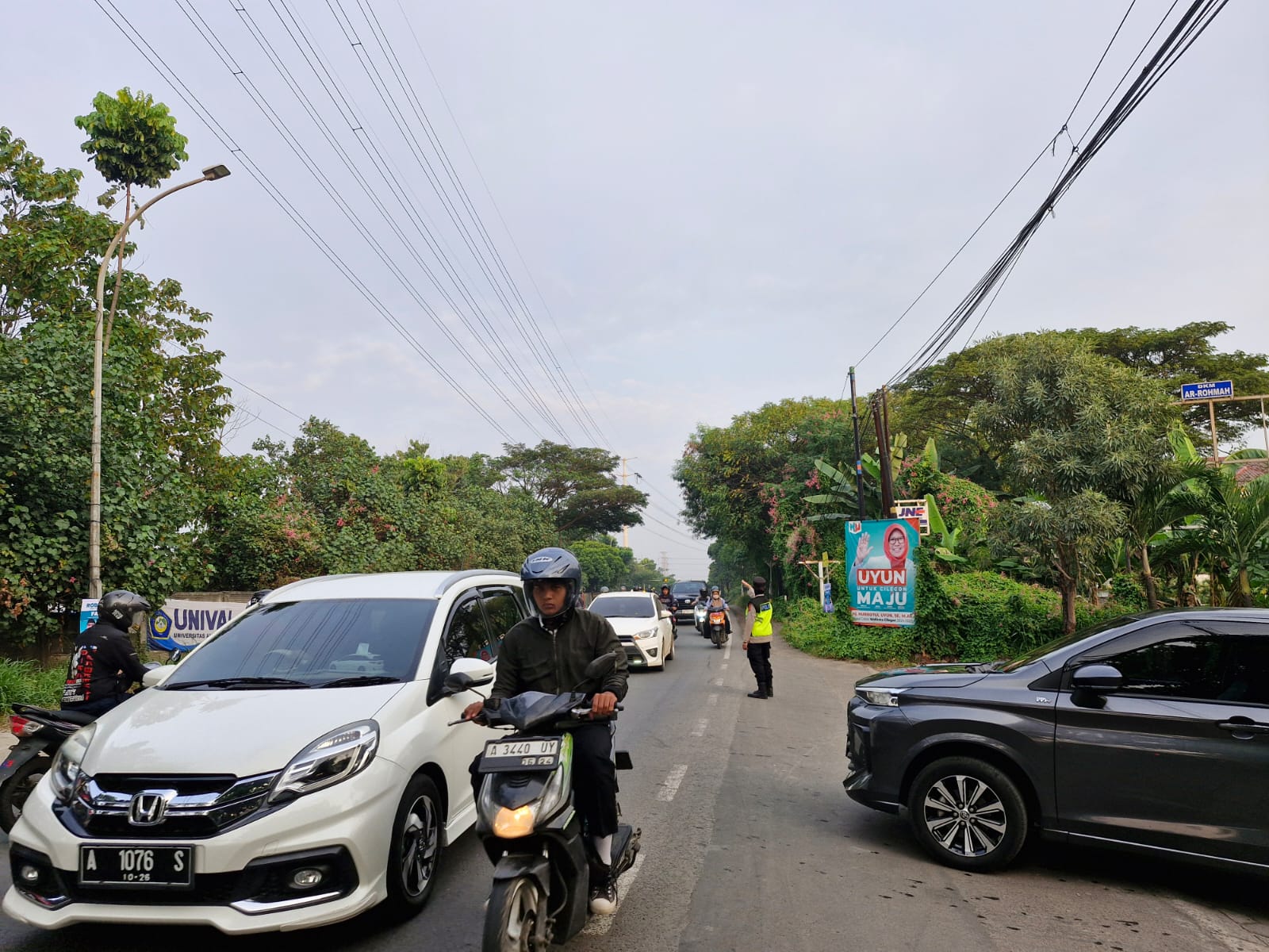 personil polres cilegon rutin mengantisipasi di titik rawan kemacetan
