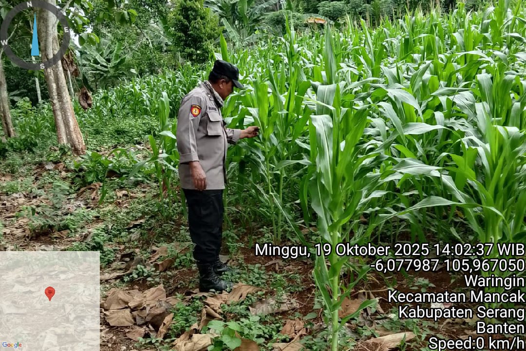 Cilegon - Polsek KP Banten Polres Cilegon Polda Banten berkolaborasi dengan Polsek Mancak melaksanakan giat pengecekan lahan Pertanian Jagung. Minggu (19/10).