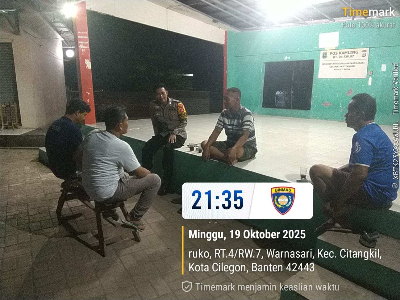Cilegon - Bhabinkamtibmas Polsek Ciwandan Polres Cilegon Polda Banten kontrol Pos Ronda dan Berikan himbauan kepada pihak terkait dan warga, agar kegiatan Siskamling ditingkatkan lagi, Senin (20/10/2025).