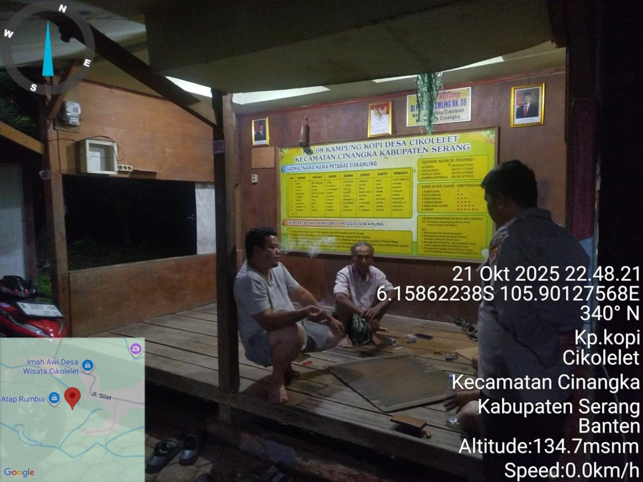 *Polres Cilegon* || Personil Bhabinkamtibmas Polsek Cinangka melaksanakan Program Komandan Wish Kapolda Banten RONDA SATKAMLING menyampaikan komunikasi dengan Petugas Siskamling agar berperan aktif dalam menciptakan Harkamtibmas yang aman dan Kondusif, Selasa (22/10/2025).