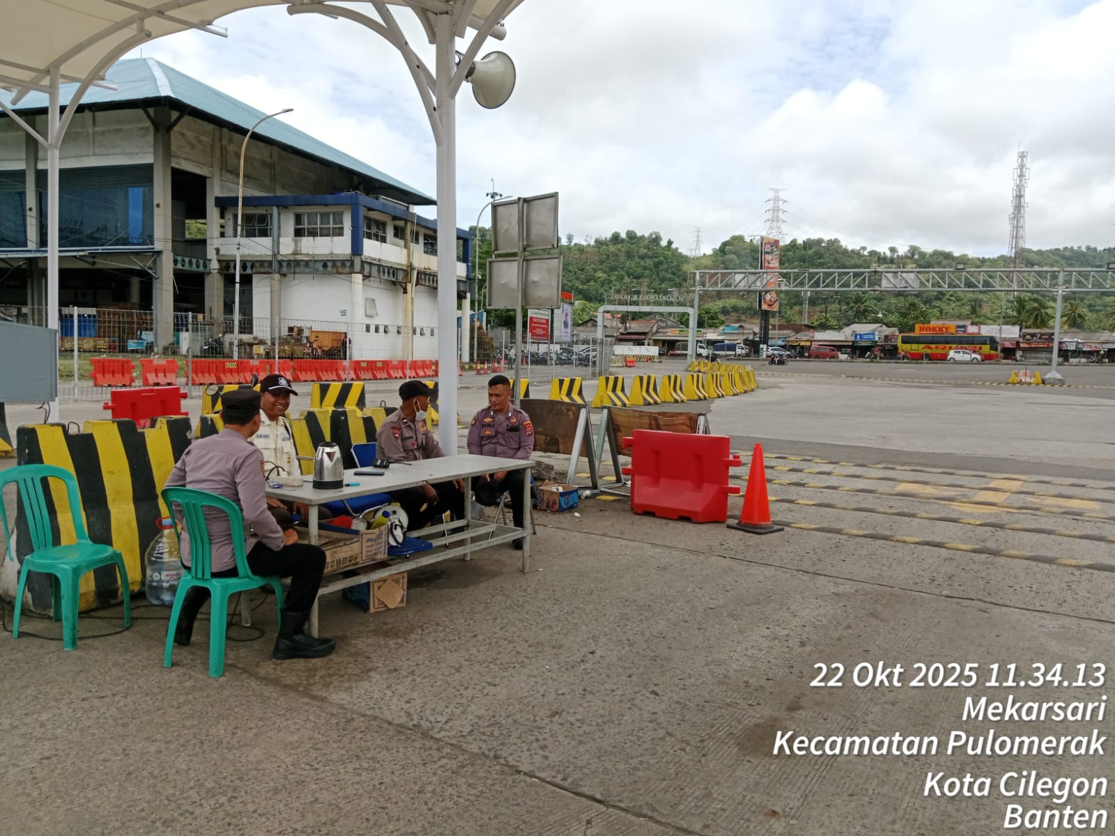 Cilegon - Personel Polsek Kskp Merak Polres Cilegon Polda Banten melaksanakan sambang dan patroli kawasan pelabuhan merak dalam rangka menjaga Harkamtibmas di Kawasan Pelabuhan Merak, Rabu (22/10/2025).