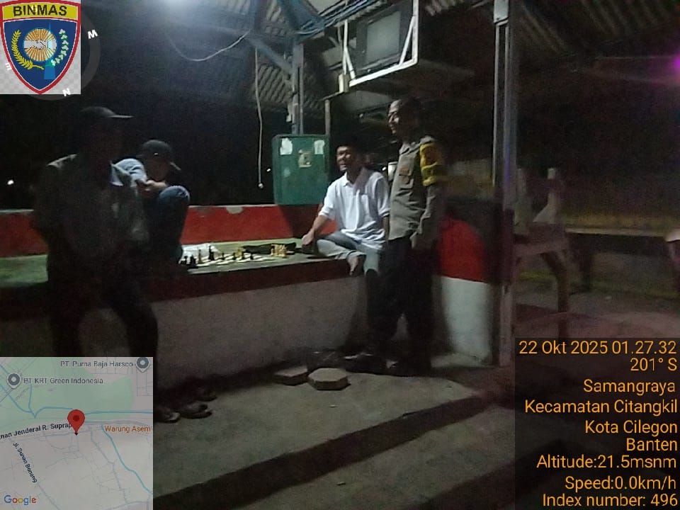 Cilegon - Guna Mencegah Terjadinya Tindak Kejahatan dan Menggiatkan Patroli Pos Ronda Siskamling di Pemukiman warga masyarakat,Personil Polsek Ciwandan Polres Cilegon Polda Banten Mengajak dan memantau pelaksanaan ronda siskamling di lingkungan daerah hukum Polsek Ciwandan, Rabu (22/10/2025).