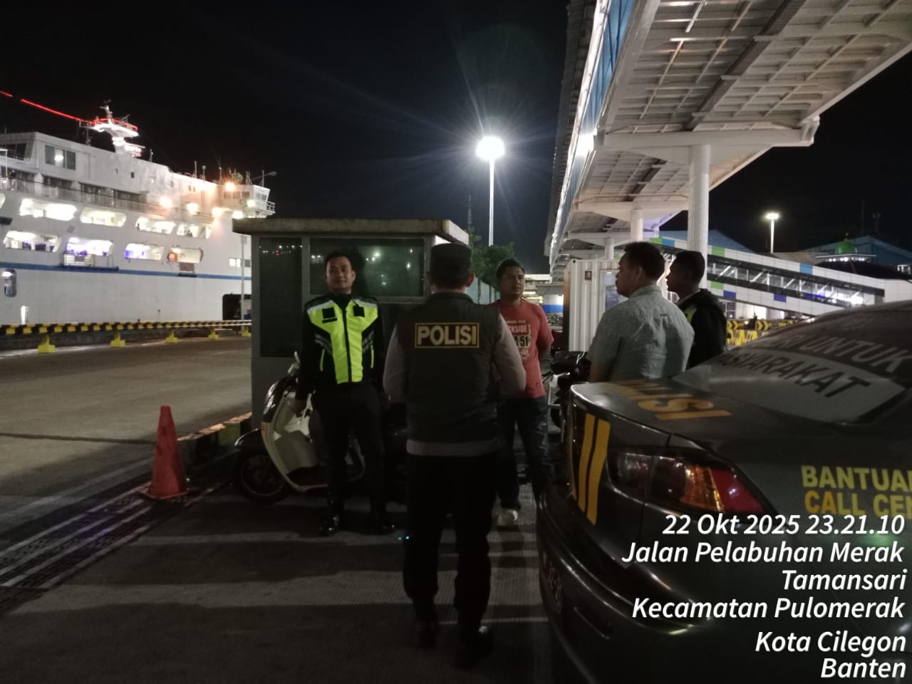 Cilegon - Personil Polsek Kskp Merak Polres Cilegon melaksanakan patroli di kawasan pelabuhan merak memberikan rasa aman dan damai, Kamis (23/10/2025)